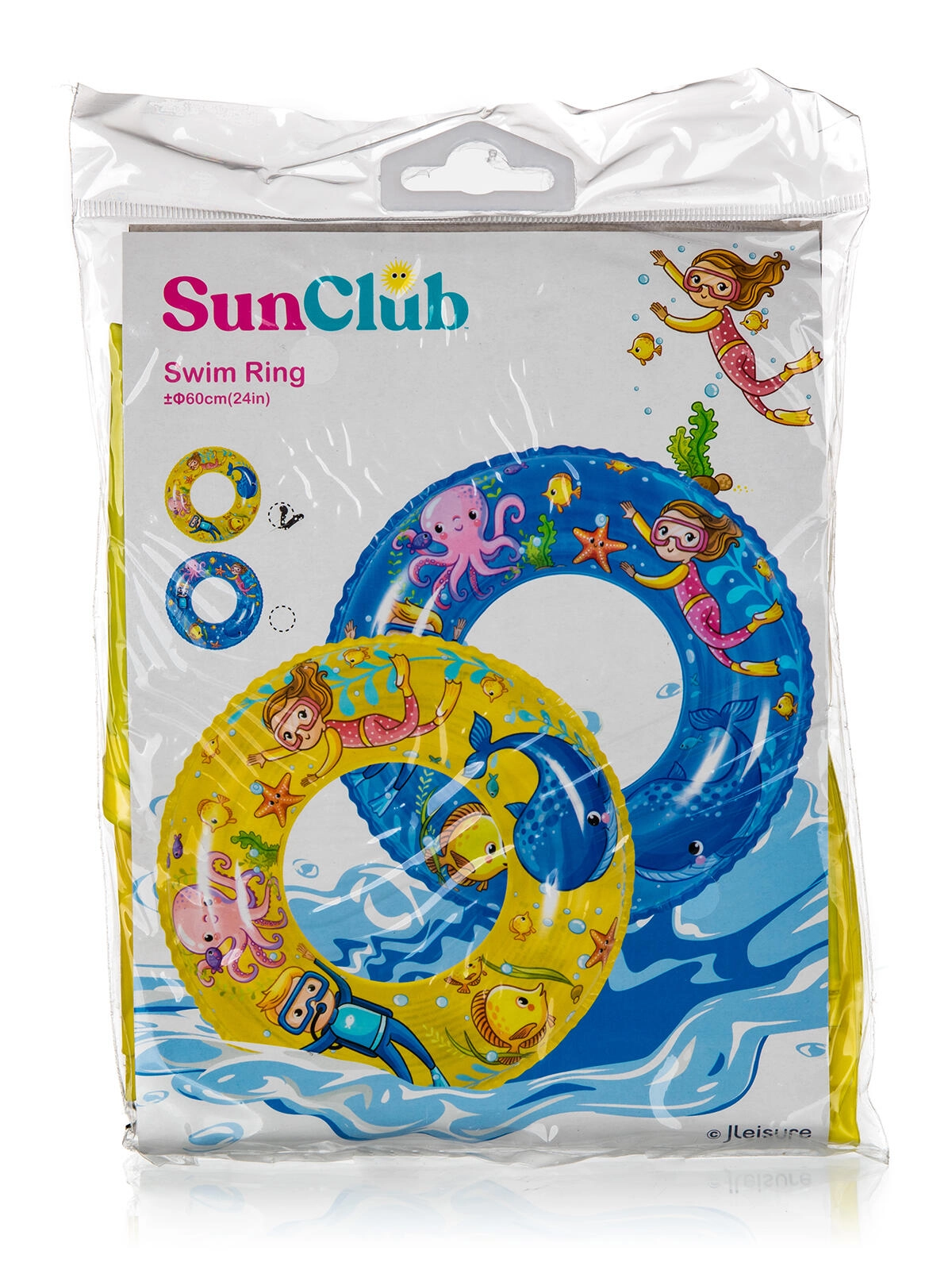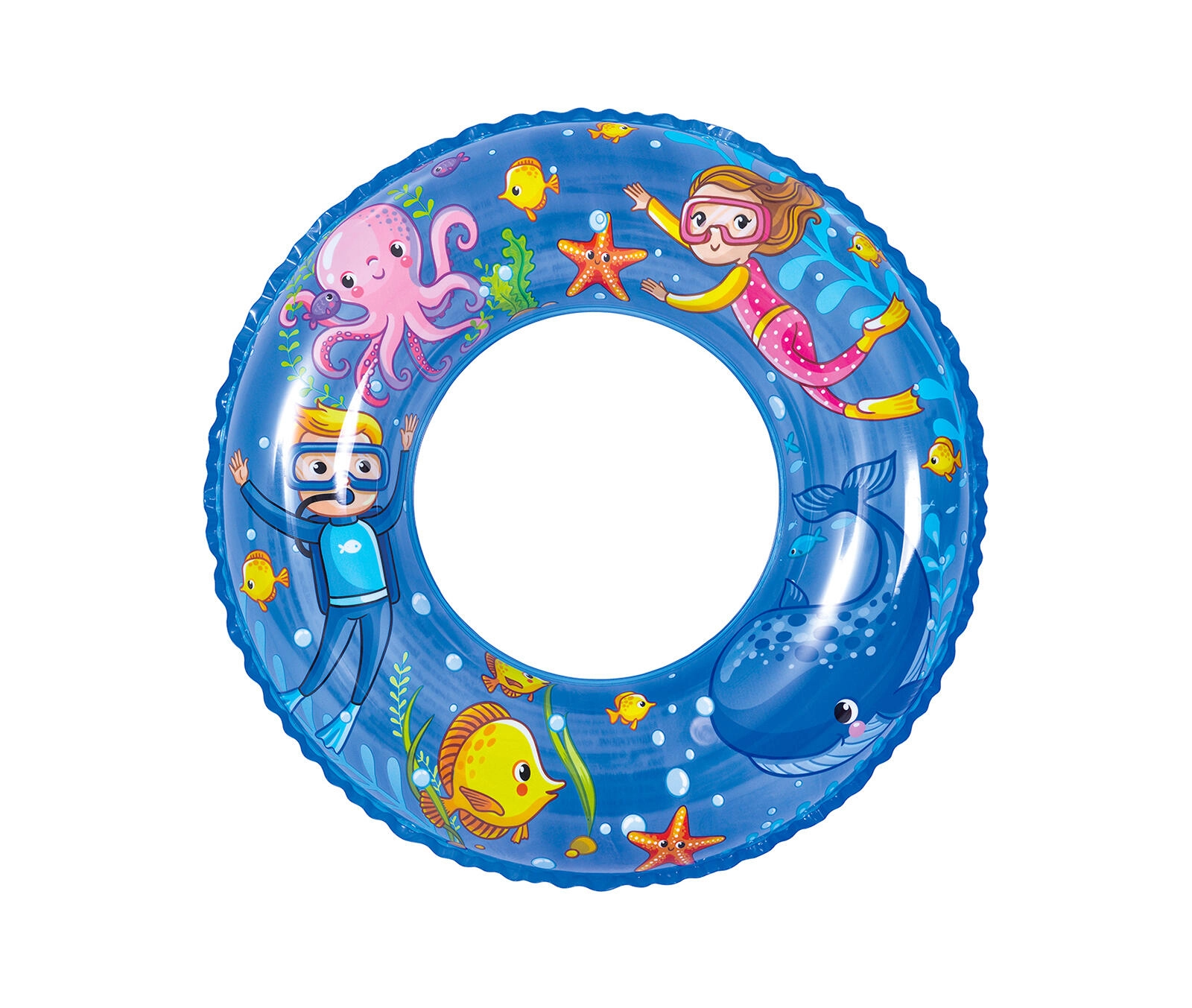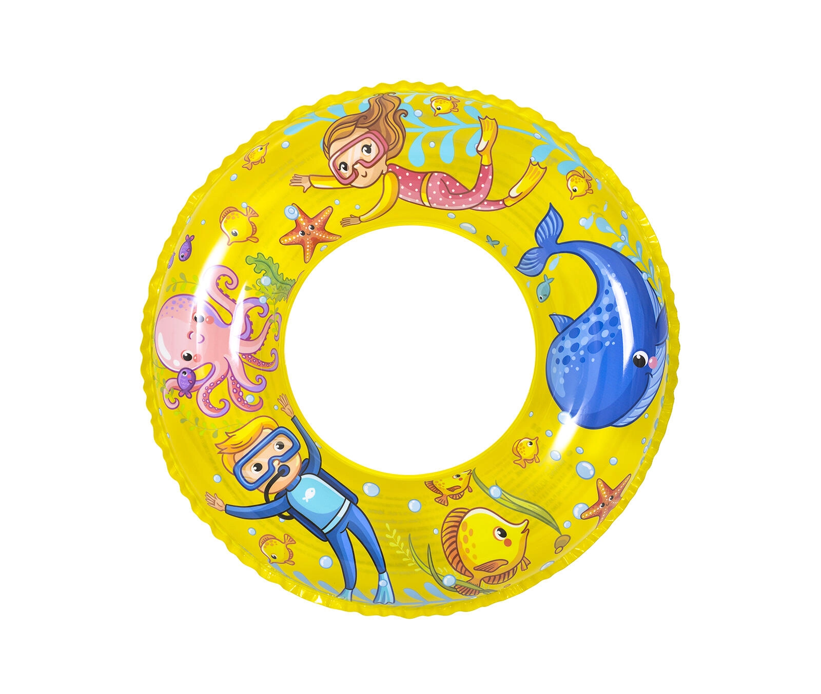 Ciesz się latem z dziecięcym nadmuchiwanym kołem o średnicy 60 cm z wytrzymałego winylu, idealnym do zabaw w wodzie. Wesołe nadruki podwodnego świata i dwie wersje kolorystyczne (niebieska i żółta) spodobają się każdemu dziecku. Koło zapewnia stabilną wyporność, wygodny chwyt i jest odpowiednie dla dzieci w wieku około 4–8 lat.