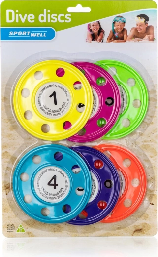 Wspieraj radość z pływania dzięki dyskom do nurkowania SPORTWELL, które rozwijają orientację pod wodą, koordynację ruchową i pewność w wodzie. Dzięki intensywnym kolorom są dobrze widoczne i zachęcają do zabawnego treningu oddechu oraz nurkowania. Trwałe wykonanie z plastiku zapewnia długą żywotność nawet przy częstym używaniu w basenie.