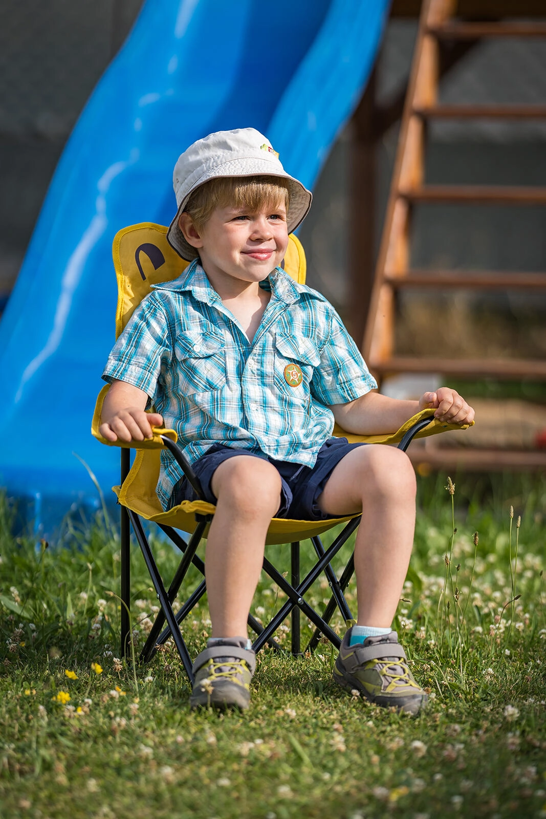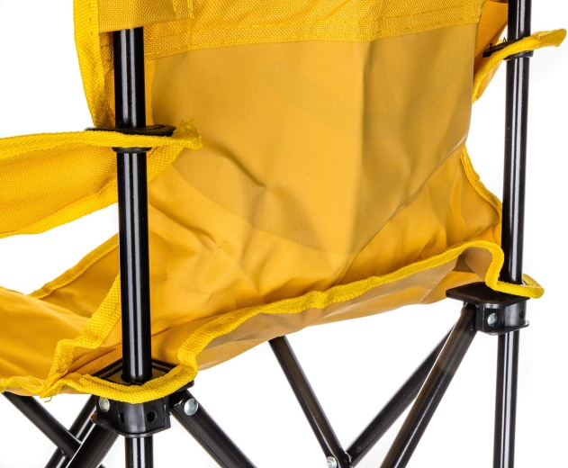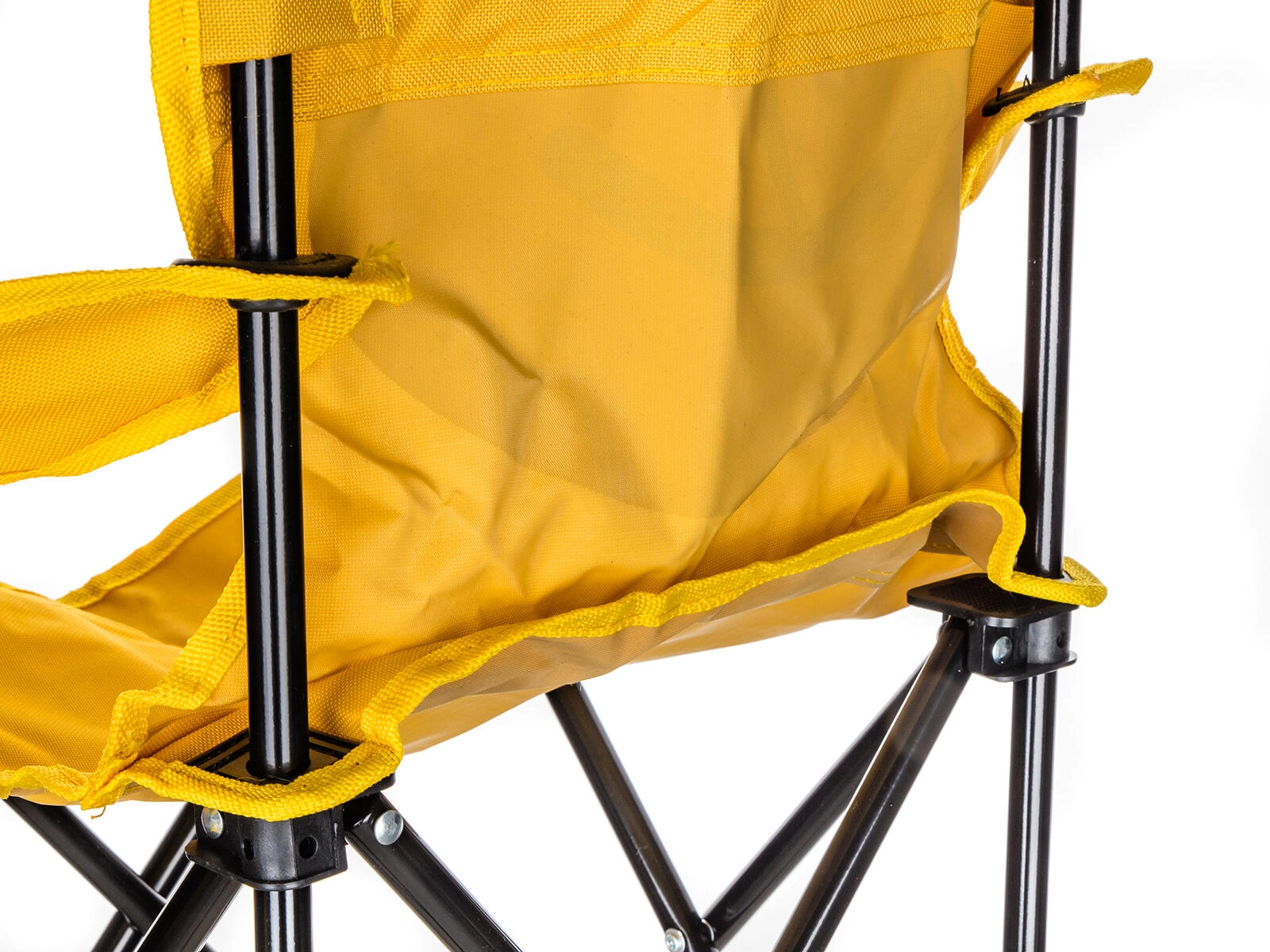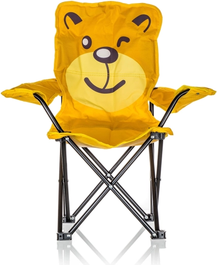 Rozkładane dziecięce krzesełko z wesołym motywem BEAR idealnie sprawdzi się w ogrodzie, na kempingu, pikniku i w pokoju dziecięcym. Łączy solidną metalową ramę z odpornym tekstylnym pokryciem, a dzięki lekkiej konstrukcji dzieci łatwo je przeniosą. Intensywny żółty kolor i uroczy nadruk misia spodobają się każdemu dziecku.