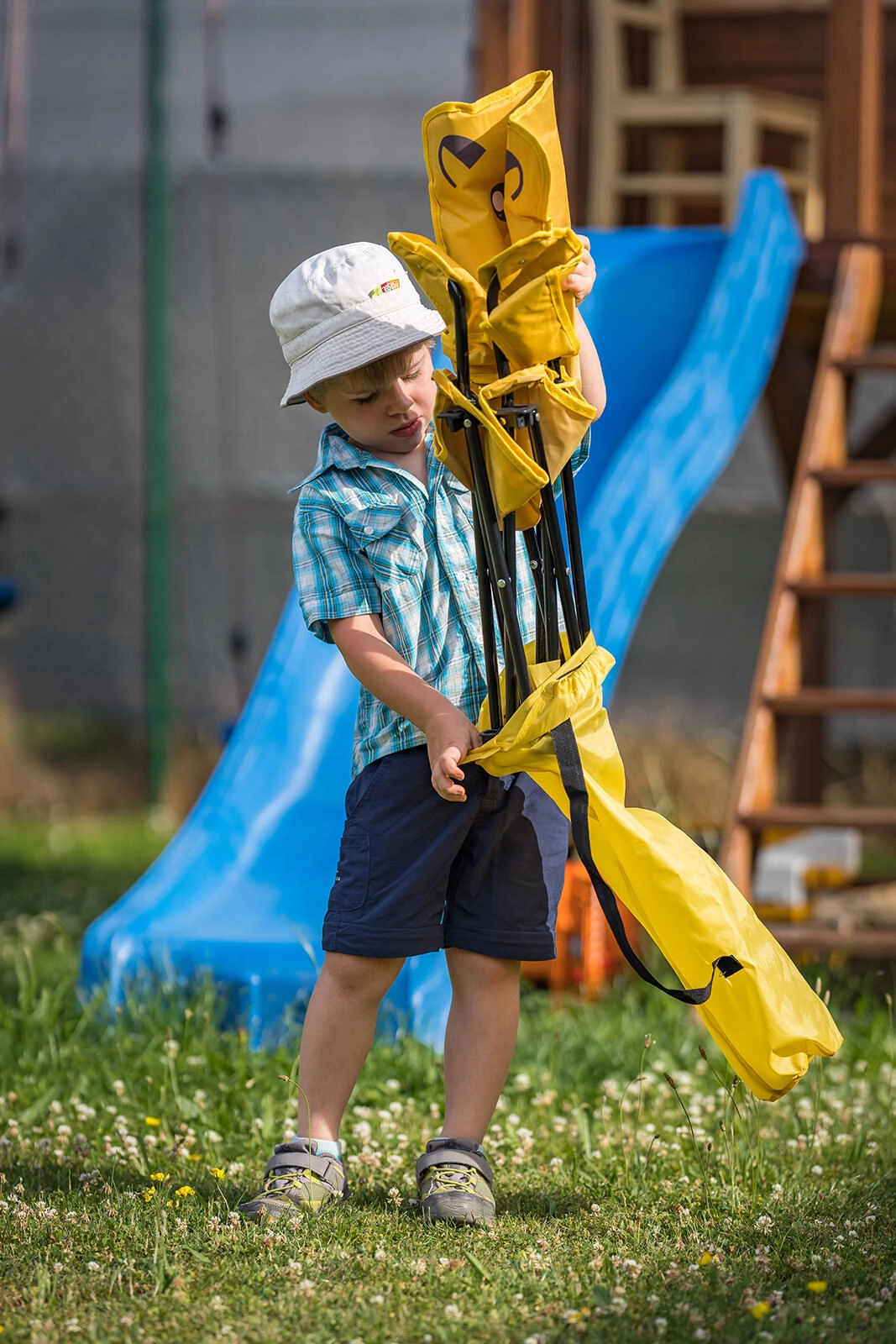 Krzesełko złożysz w kilka sekund i schowasz do kompaktowego pokrowca. Idealne w podróży, na pikniki i wycieczki z dziećmi.