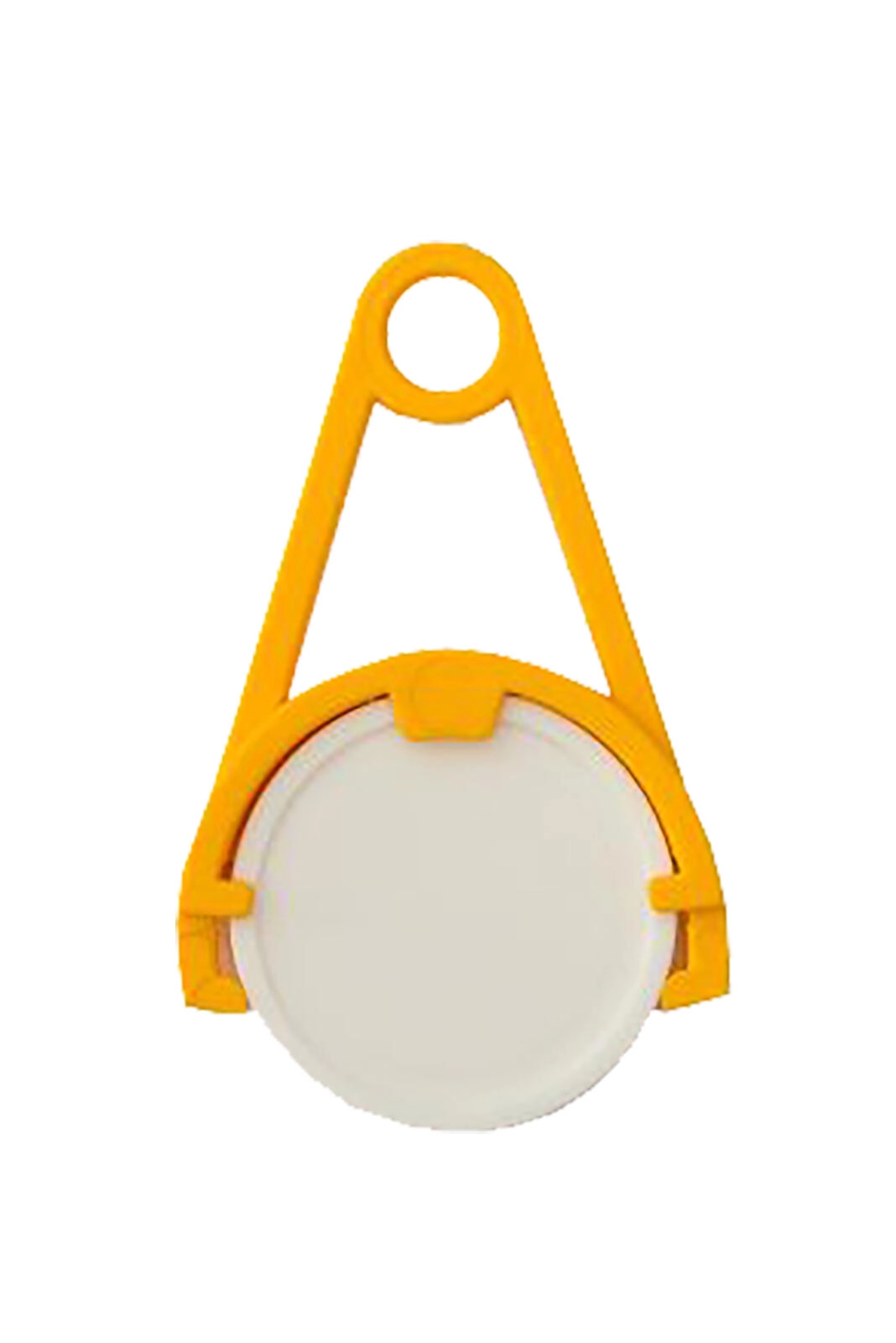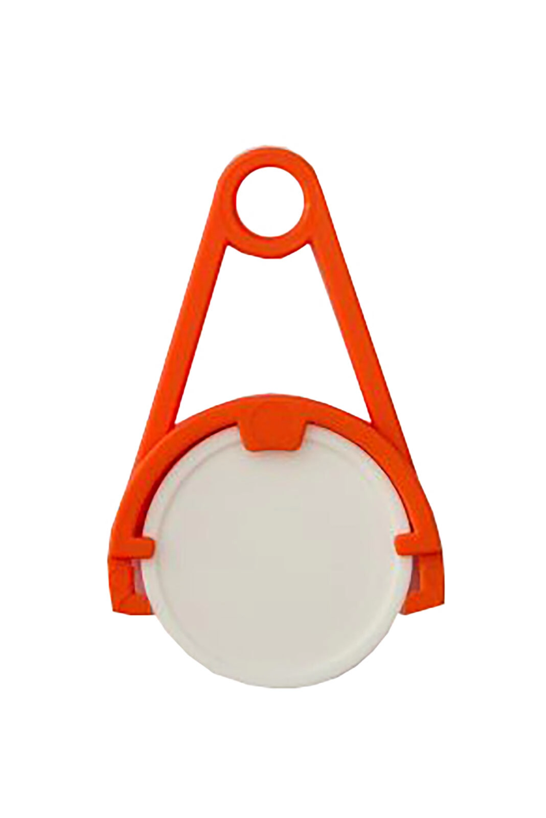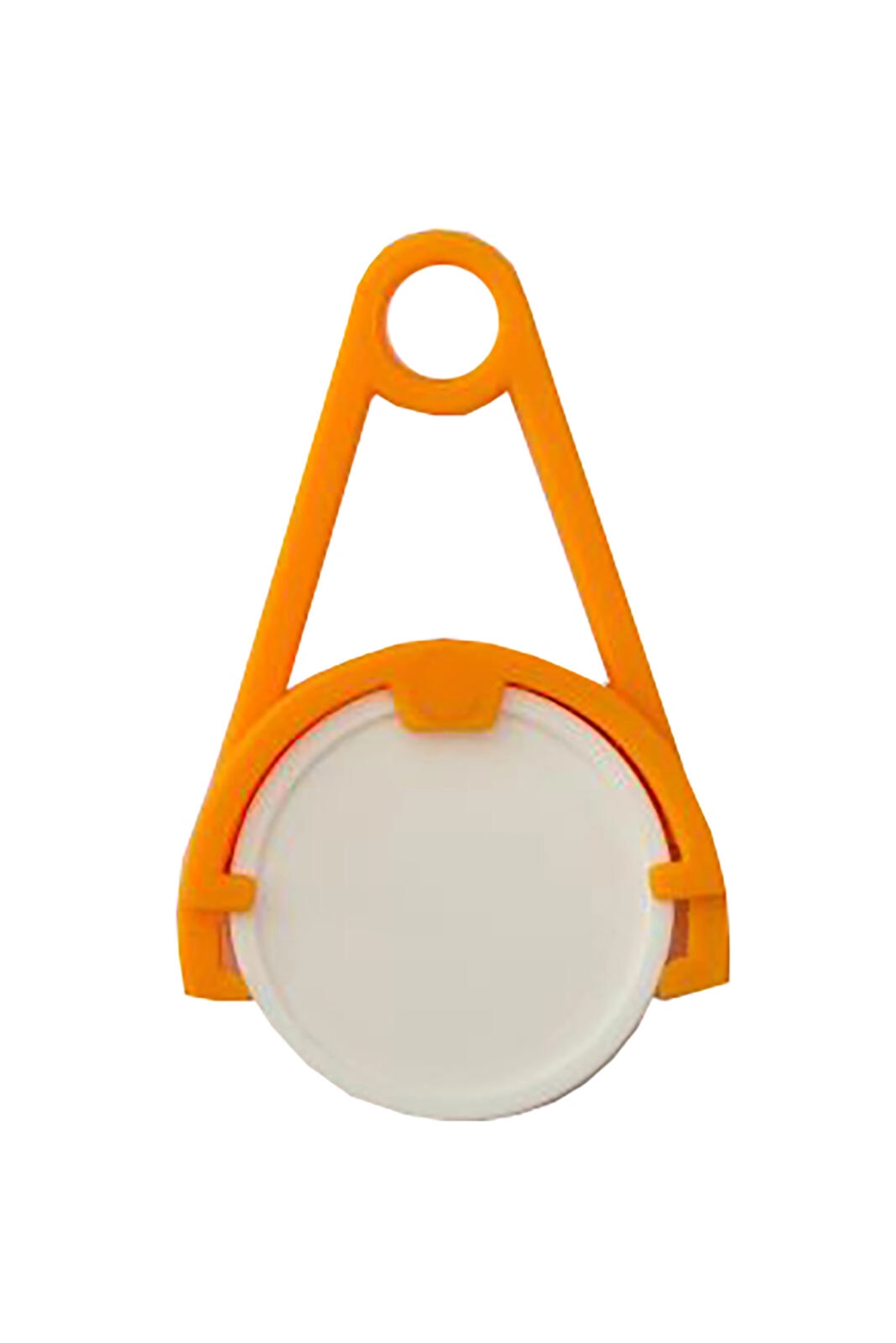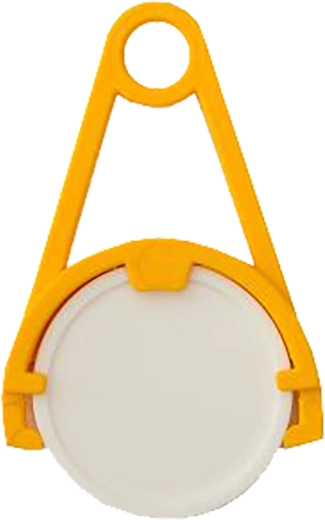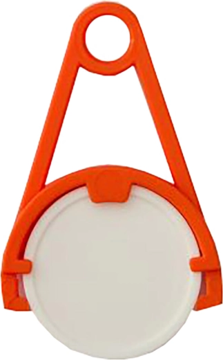 Solidny plastikowy korpus z okrągłą wkładką i oczkiem do zawieszenia znosi codzienne użytkowanie i nie obciąża kieszeni ani breloka.