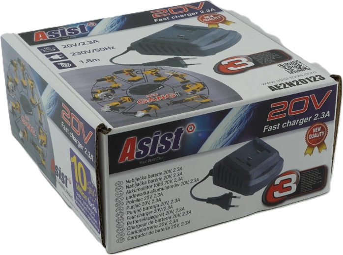 Ładowarka ASIST 20 V / 2,3 A to praktyczne uzupełnienie dla wszystkich, którzy chcą pracować bez ograniczeń przewodami, a jednocześnie mieć pewność szybkiego doładowania akumulatorów. Należy do rodziny AKU GANG, gdzie można wzajemnie łączyć akumulatory i ładowarki – wystarczy jeden zestaw startowy, a resztę narzędzi kupisz bez akumulatora.