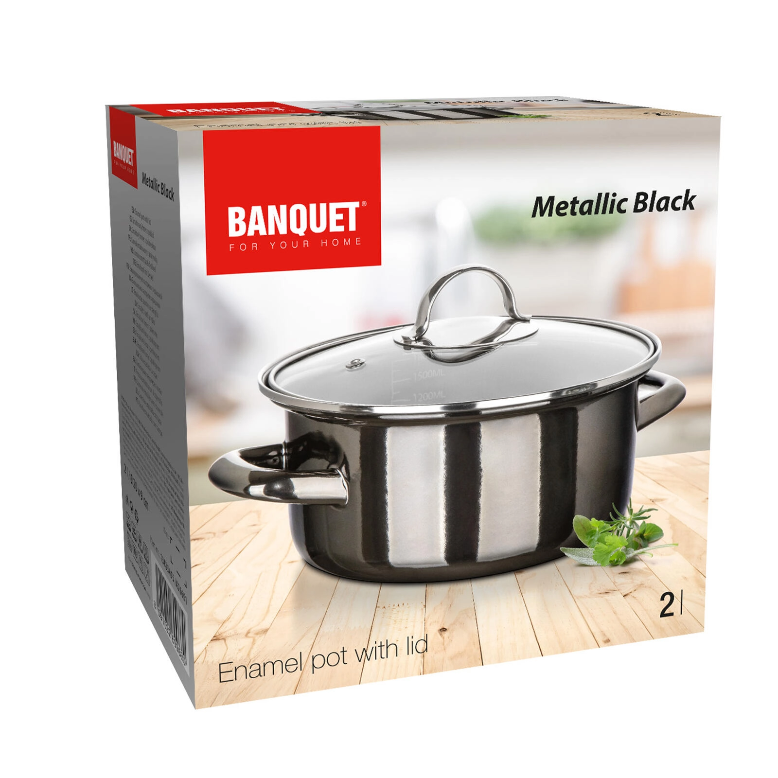 Odkryj praktyczny i stylowy garnek w czarnej metalizie, który stanie się niezawodnym pomocnikiem do gotowania zup, sosów czy dodatków. Emaliowana powierzchnia jest trwała, łatwa w utrzymaniu i nadaje naczyniu ponadczasowy wygląd. Szklana pokrywka pozwala kontrolować gotowanie bez zbędnego odkrywania, co oszczędza energię i czas.