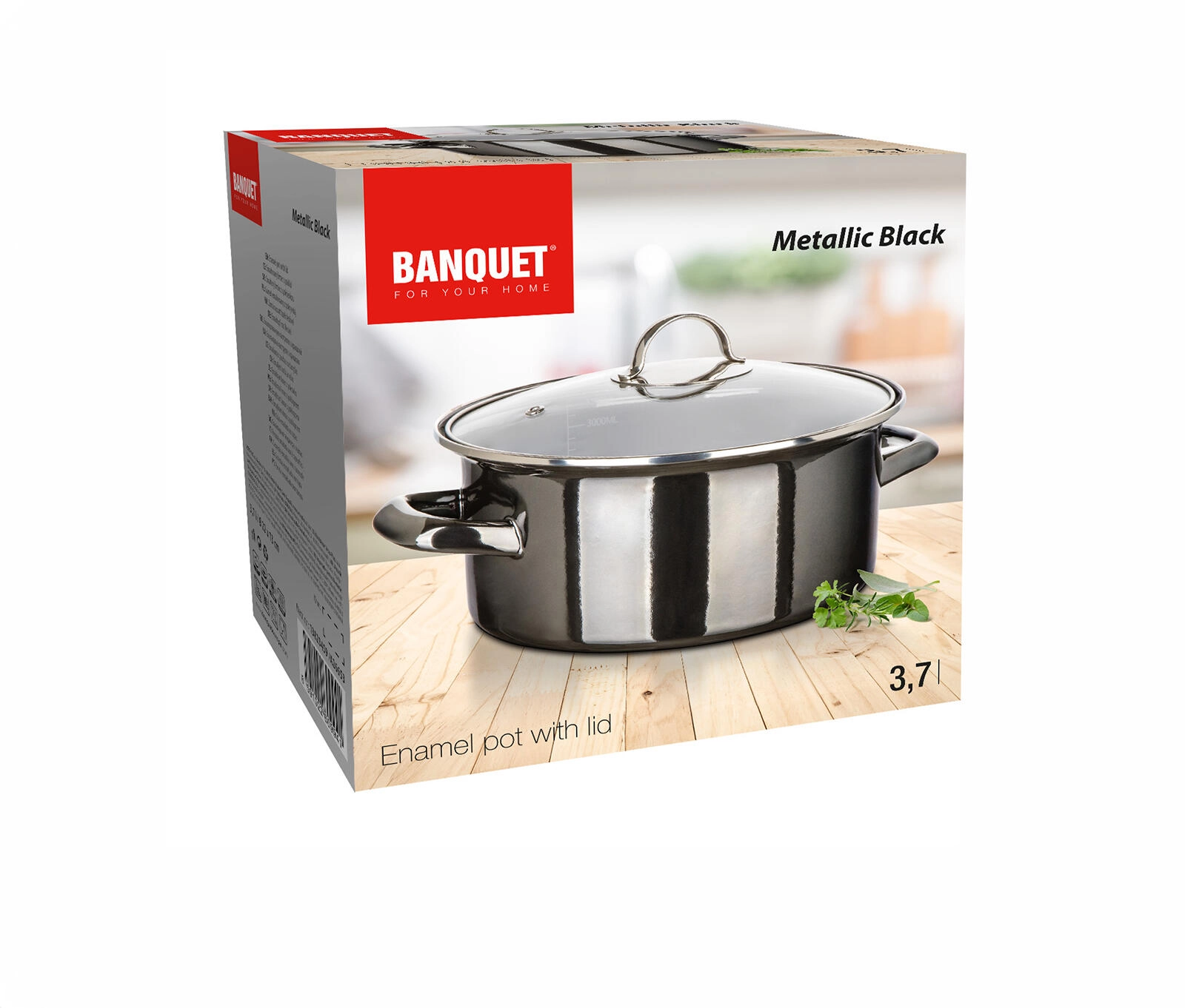 Odkryj niezawodny garnek do codziennego użytku w nowoczesnym designie Metallic Black. Emaliowana powierzchnia jest trwała, łatwa w czyszczeniu i zapewnia długą żywotność, a szklana pokrywa pozwala wygodnie śledzić przebieg gotowania bez zbędnej utraty pary.