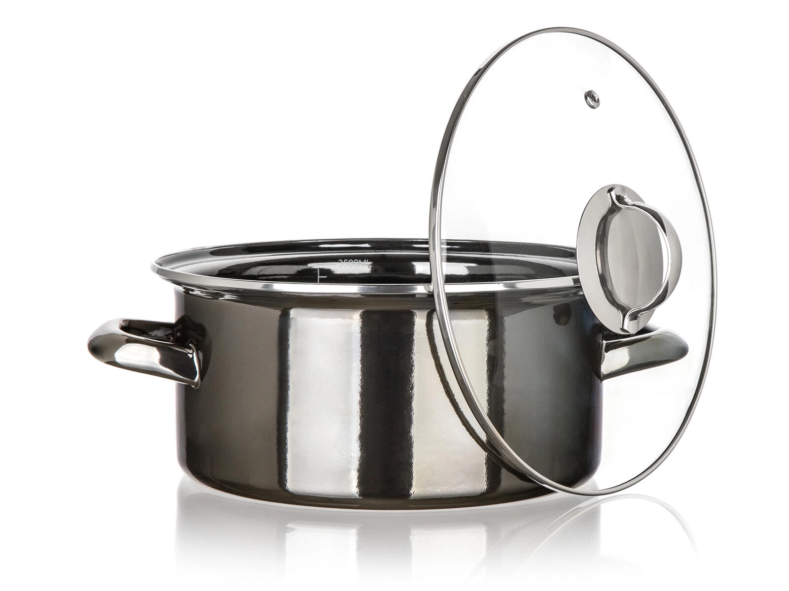 - Emaliowany garnek ze szklaną pokrywą