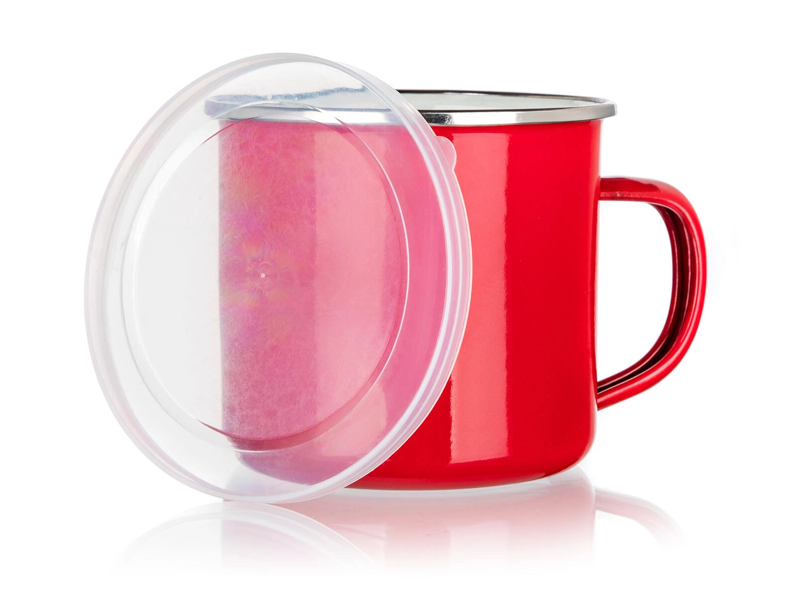 Wytrzymały i elegancki emaliowany kubek w intensywnie czerwonym kolorze doskonale pasuje do każdej kuchni i biura. Dzięki plastikowej pokrywce kawa, herbata czy kakao pozostaną dłużej ciepłe, a ryzyko zachlapania będzie mniejsze. Podwójna warstwa emalii na stali węglowej jest solidna, higieniczna i łatwa w czyszczeniu.