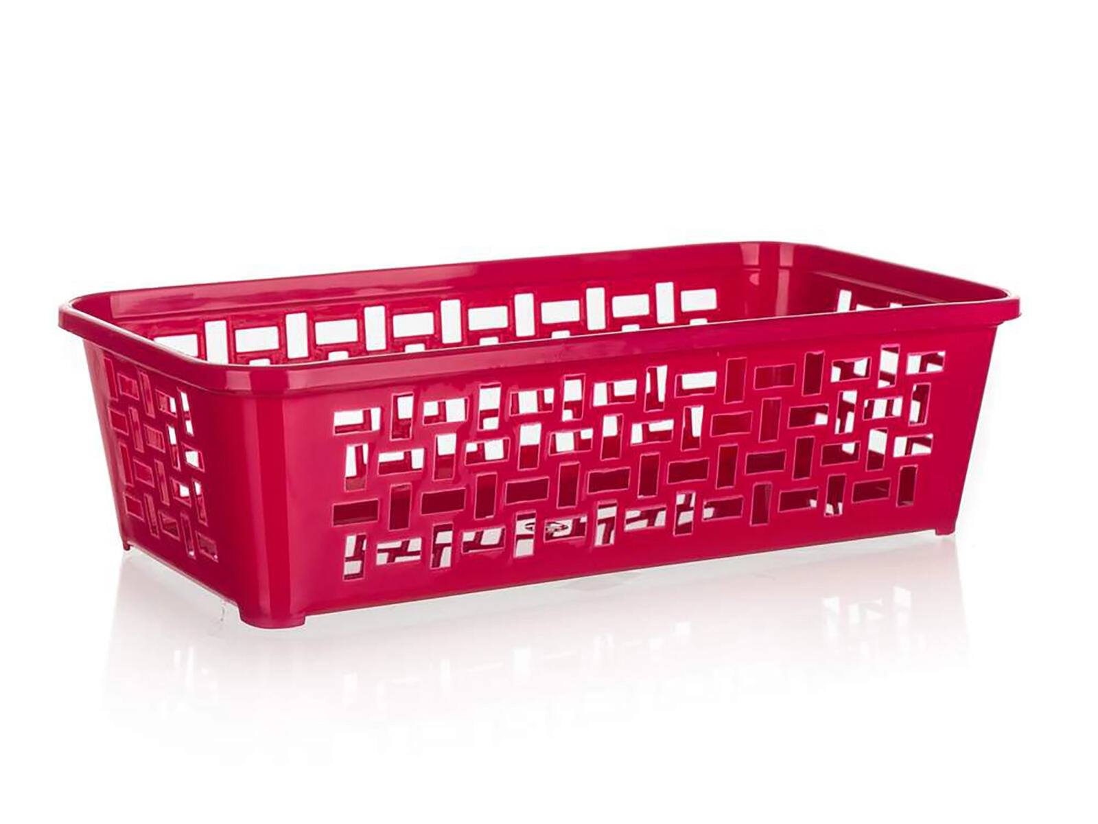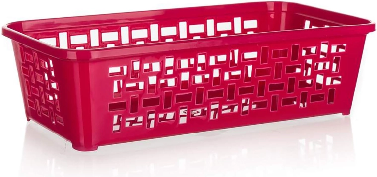 Praktyczny plastikowy koszyk o wymiarach 19 × 9,7 × 5 cm do przejrzystego przechowywania drobiazgów w łazience, kuchni lub biurze. Dzięki możliwości poprzecznego włożenia do większego koszyka 30 × 20 cm stworzysz półpoziom i uzyskasz lepszą organizację przestrzeni. Lekki, wytrzymały i w miksie kolorów, aby łatwo dopasować do wnętrza.
