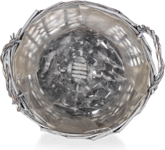 Okrągły wiklinowy koszyk GRIS w eleganckim szarym kolorze ozdobi półkę, stół i parapet. Wewnętrzna plastikowa wkładka chroni plecionkę przed wilgocią, dzięki czemu świetnie sprawdza się jako osłonka na rośliny lub do aranżowania dekoracji. Dzięki kompaktowym wymiarom łatwo łączy się z innymi dodatkami.