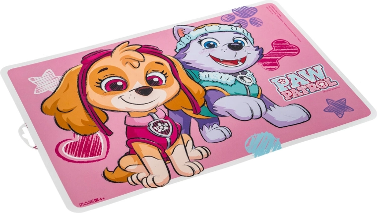 Spraw dzieciom frajdę przy stole dzięki podkładce PAW PATROL Girl. Wysokiej jakości plastikowy materiał łatwo się czyści, więc poradzi sobie z okruszkami i rozlanymi napojami w mgnieniu oka. Dzięki wygodnemu formatowi 43 × 28 cm zapewnia wystarczająco dużo miejsca na talerz, sztućce i kubek.