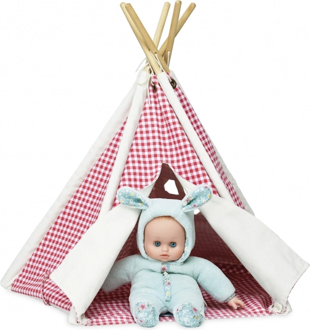 Mini tipi to idealny dodatek do kreatywnej zabawy lalkami. Dzięki drewnianej konstrukcji i wytrzymałemu materiałowi trzyma kształt, łatwo je przenosić, a rozstawienie i złożenie zajmuje chwilę. Kraciasty wzór w czerwono-białej kolorystyce jest zarazem zabawny i stylowy.