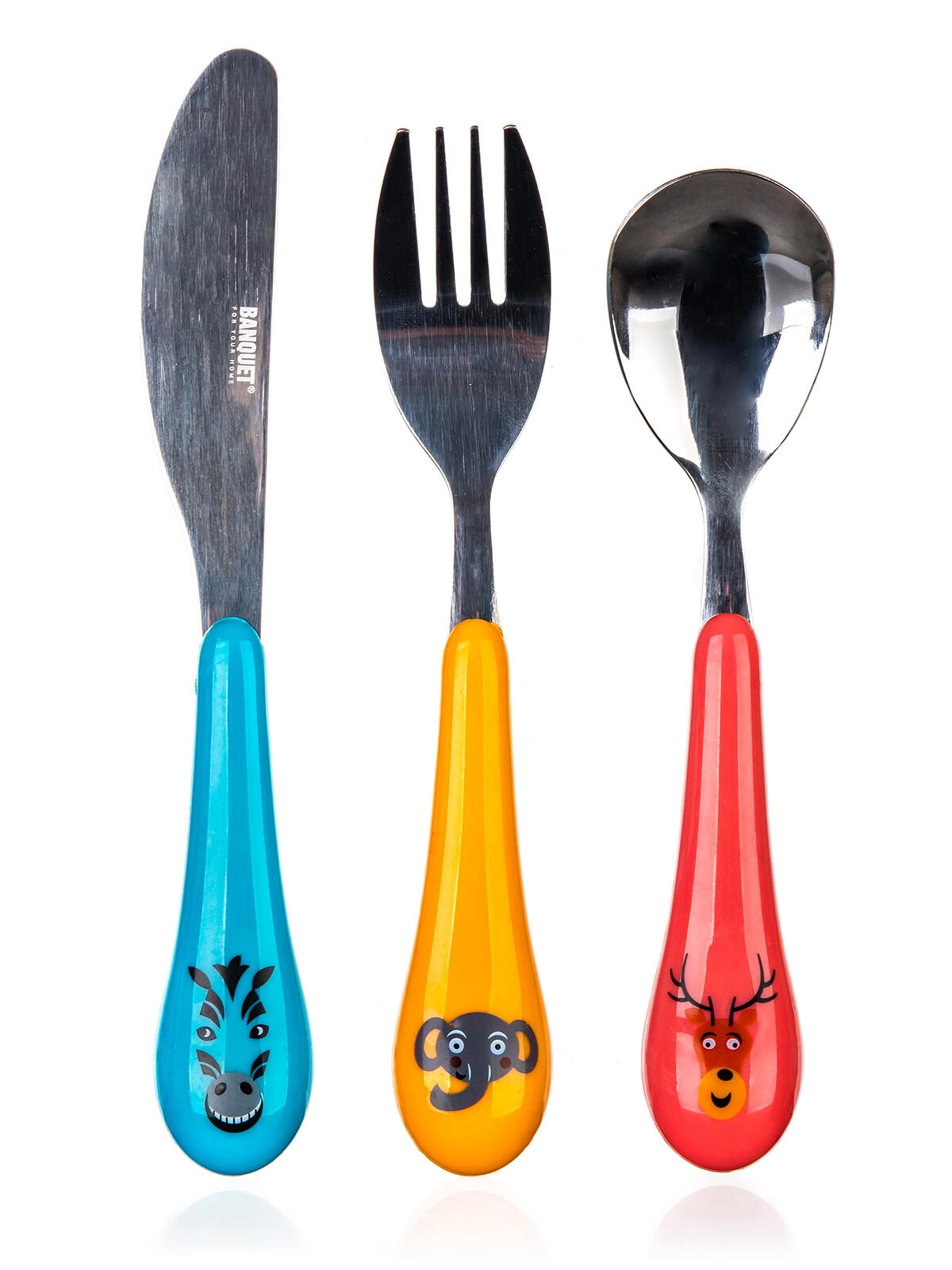 Ten 3‑częściowy zestaw zawiera wszystko, czego dzieci potrzebują do wygodnego jedzenia: łyżkę, widelec i nóż. Dzięki radosnym motywom z ZOO każdy posiłek staje się zabawą, a dzieci szybciej przyswajają prawidłowe nawyki.