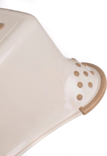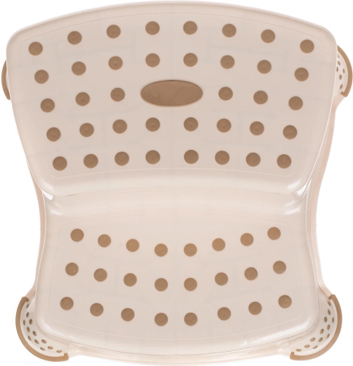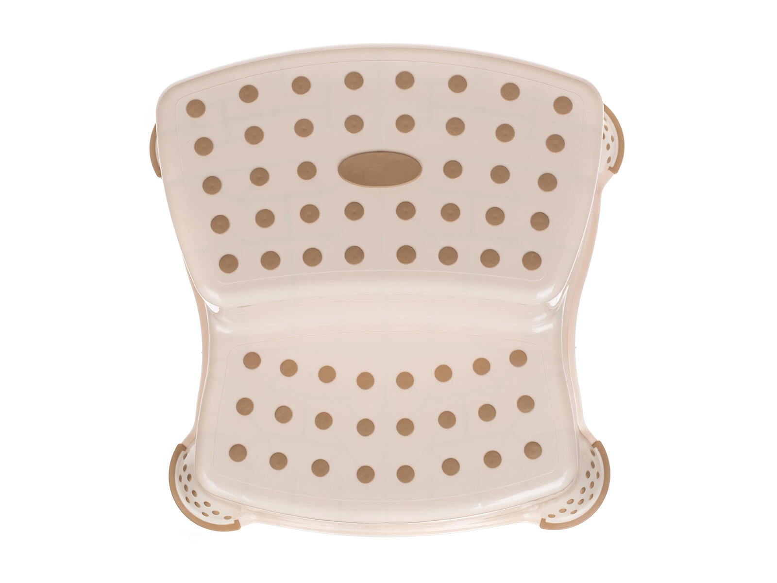 Antypoślizgowe powierzchnie na stopniach i stabilna podstawa zapewniają bezpieczny krok na gładkich podłogach. Kompaktowe wymiary oszczędzają miejsce, a kremowe wykończenie pasuje do kuchni, łazienki i pokoju dziecięcego.