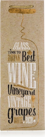 Stylowa torba prezentowa na butelkę z motywem TIME TO DRINK doskonale podkreśli każde wręczenie wina lub alkoholu wysokoprocentowego. Wykonana z wysokiej jakości papieru i wyposażona w mocny tekstylny uchwyt dla wygodnego i bezpiecznego przenoszenia. Idealna na uroczystości, wesela i prezenty dla miłośników dobrego trunku.
