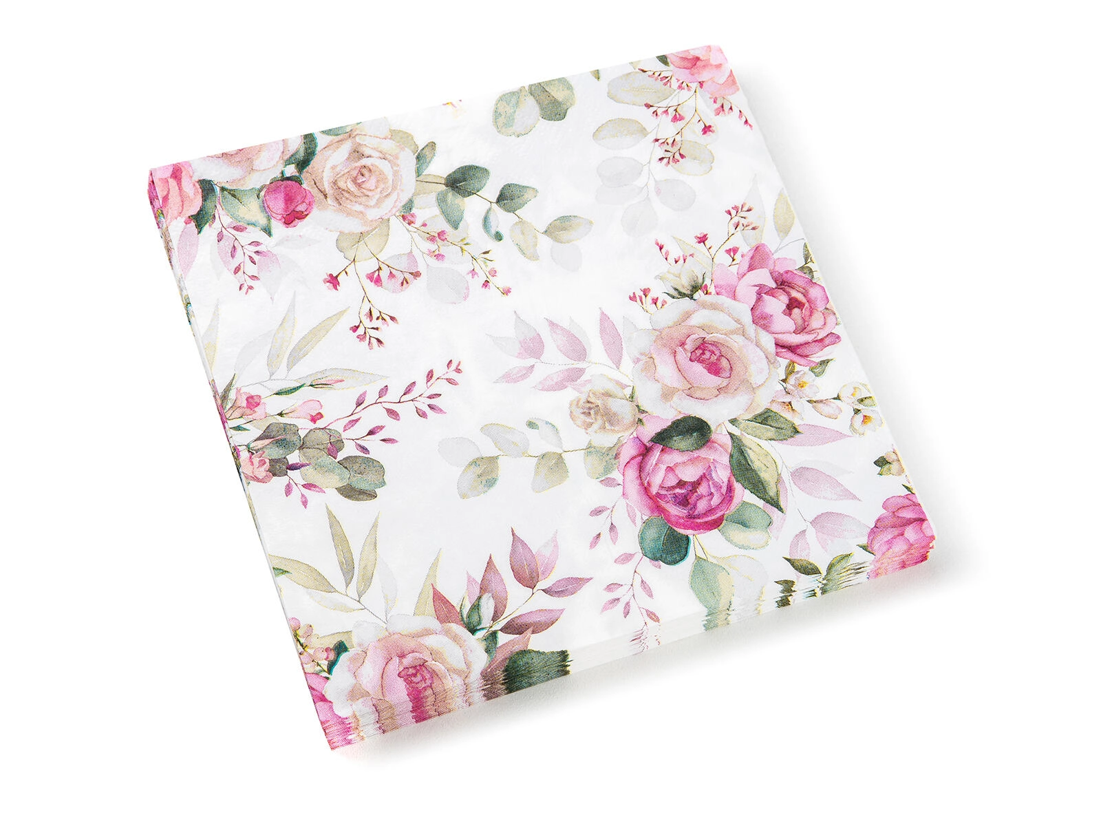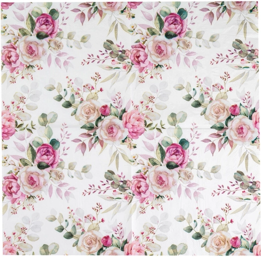 Serwetki w designie Pink Rose pasują do romantycznego, rustykalnego i ślubnego stylu dekoracji. Dzięki uniwersalnemu formatowi 33 × 33 cm są praktyczne do serwowania przystawek, deserów i dań głównych.