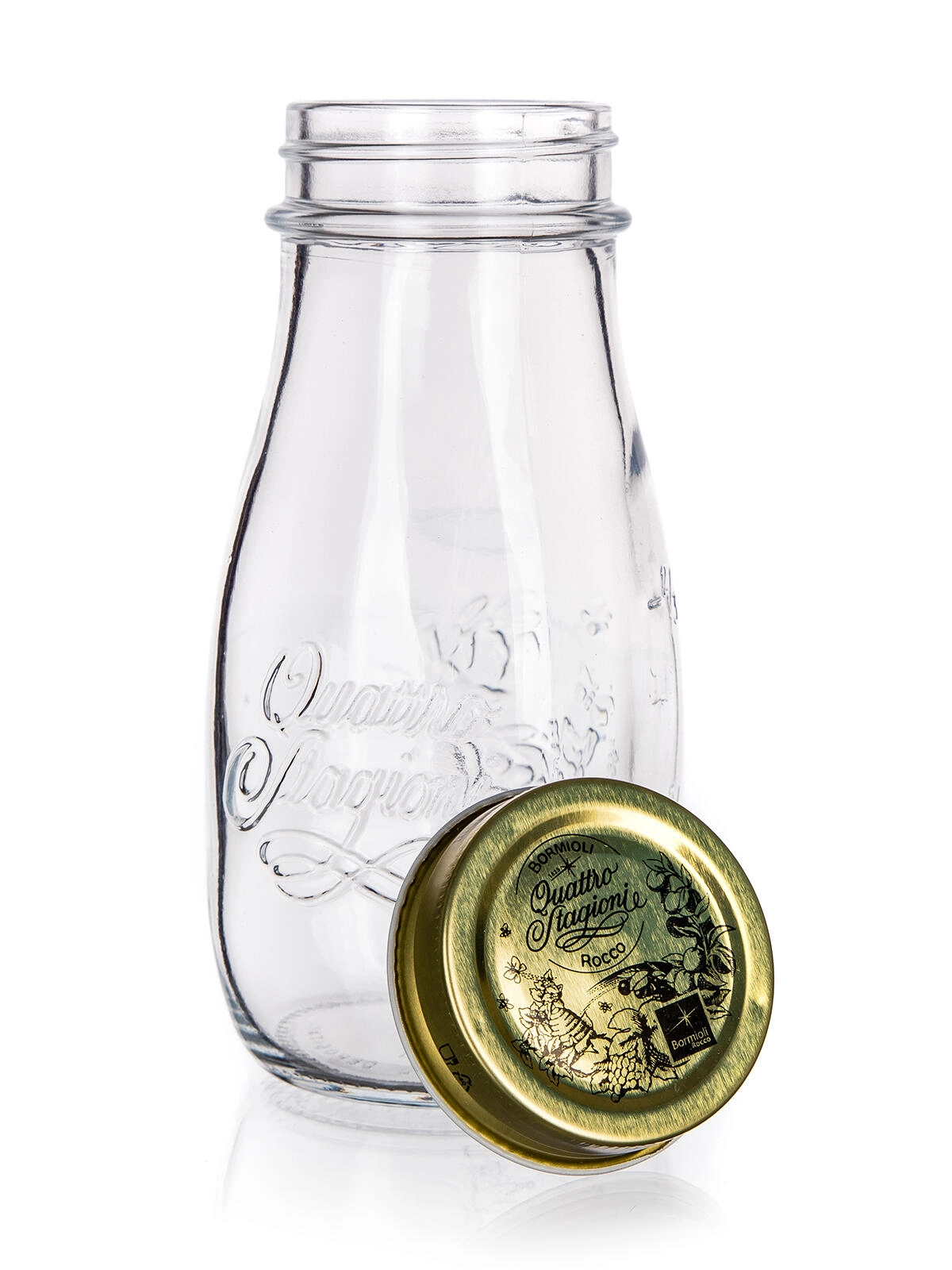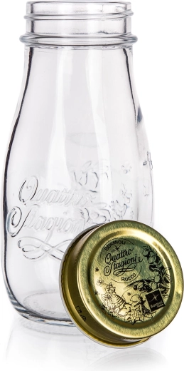 Ta uniwersalna szklana butelka Quattro Stagioni o pojemności 400 ml doskonale sprawdzi się w każdym domu. Dzięki solidnej metalowej nakrętce bezpiecznie zamyka zawartość i pomaga utrzymać jej świeżość. Nadaje się nie tylko do domowego pasteryzowania sosów, soków czy syropów, ale także jako stylowa butelka do codziennego picia.