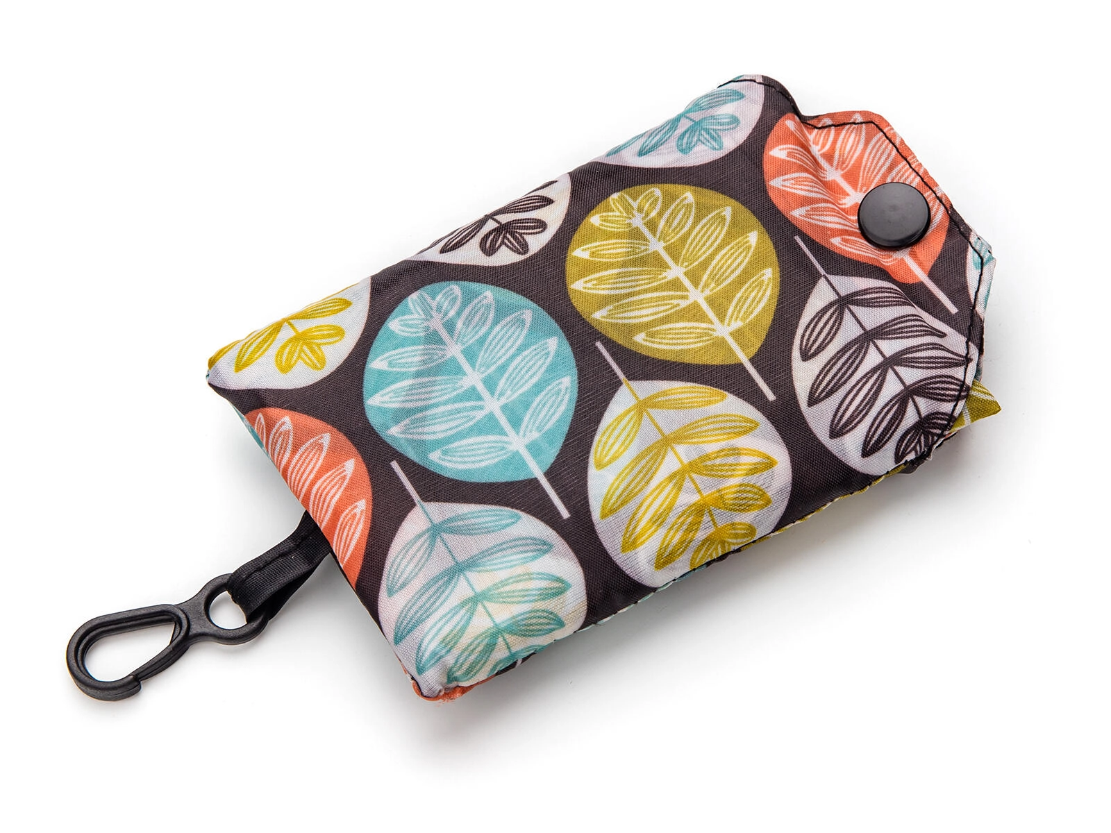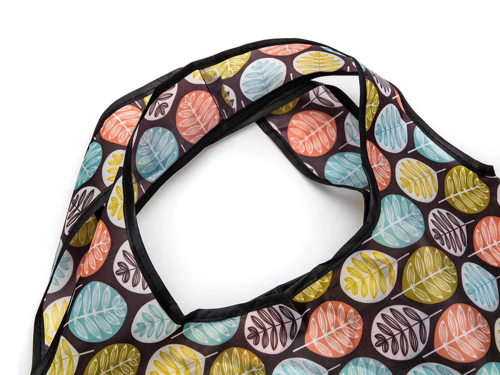 Szukasz praktycznej, stylowej i ekologicznej alternatywy dla plastikowych toreb? Składana torba na zakupy Pretty Up z kolorowym wzorem liści jest leciutka, wytrzymała i w mgnieniu oka złożysz ją do małego etui. Idealna do torebki, plecaka i samochodu.