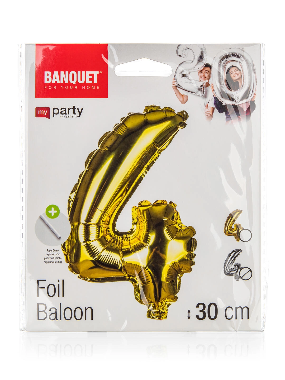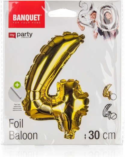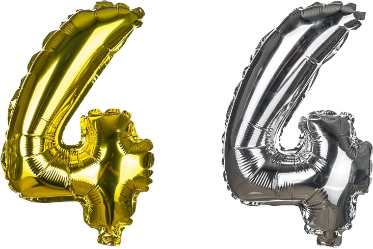 Stylowy balon foliowy w kształcie cyfry 4 o wysokości ok. 30 cm w eleganckim kolorze złotym lub srebrnym. Łatwe pompowanie za pomocą dołączonej papierowej słomki i proste zawieszenie na sznureczku. Idealny na urodziny, rocznice, przyjęcia w ogrodzie i imprezy tematyczne.