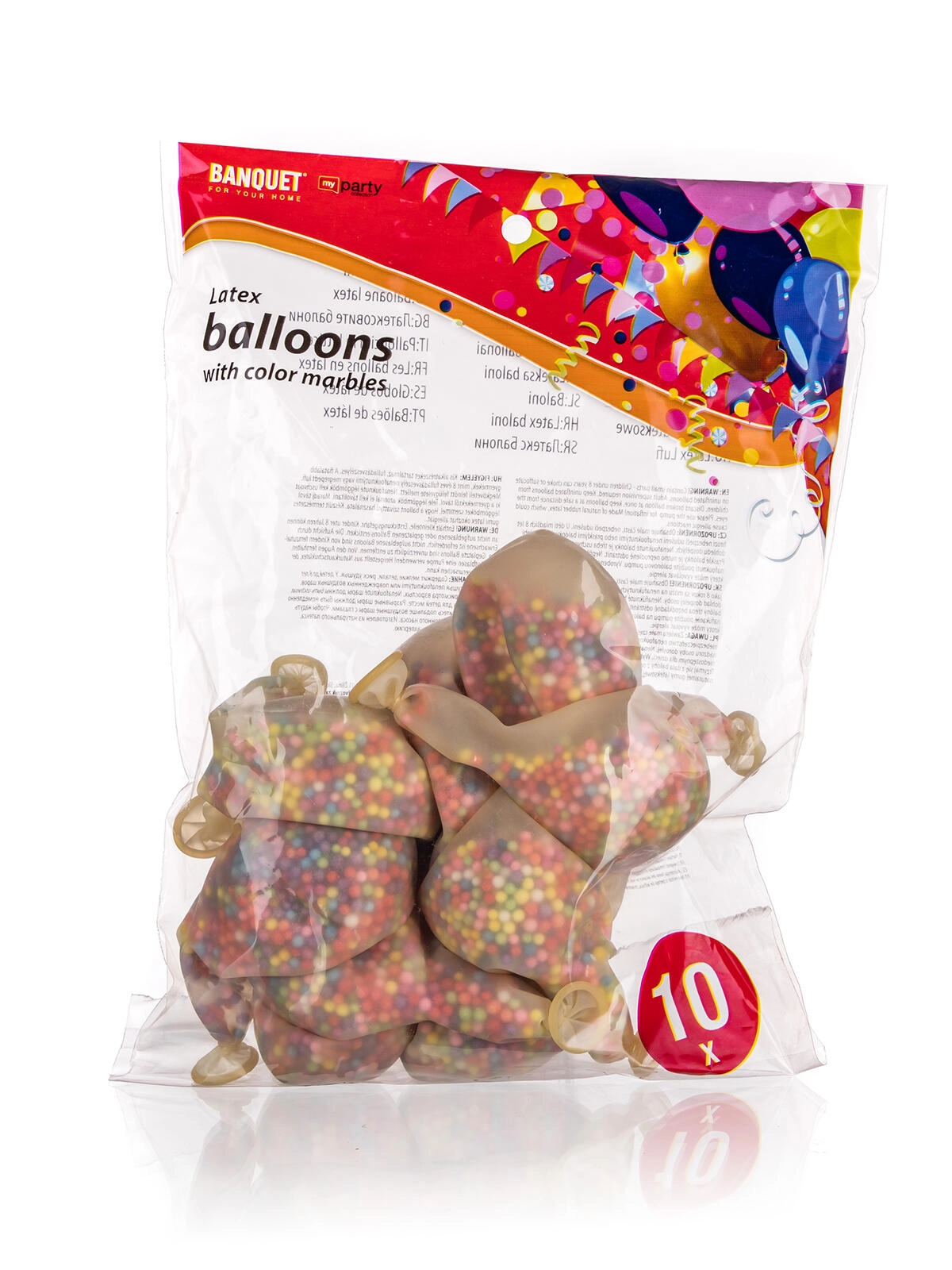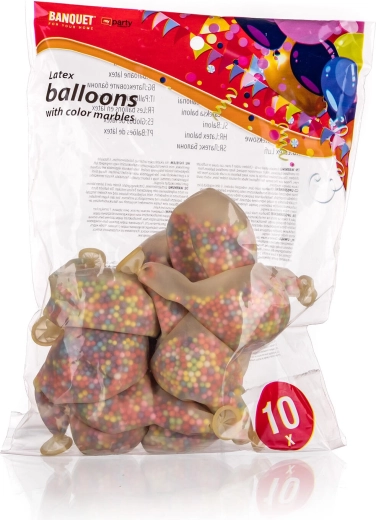 Rozjaśnij każdą imprezę zestawem lateksowych balonów z kuleczkami MY PARTY. W opakowaniu znajdziesz 10 sztuk wysokiej jakości, bezpiecznych dla zdrowia balonów o średnicy ok. 30 cm, wypełnionych kolorowymi kulkami poliestrowymi dla efektownego wyglądu. Idealne na urodziny, przyjęcia i eleganckie dekoracje.