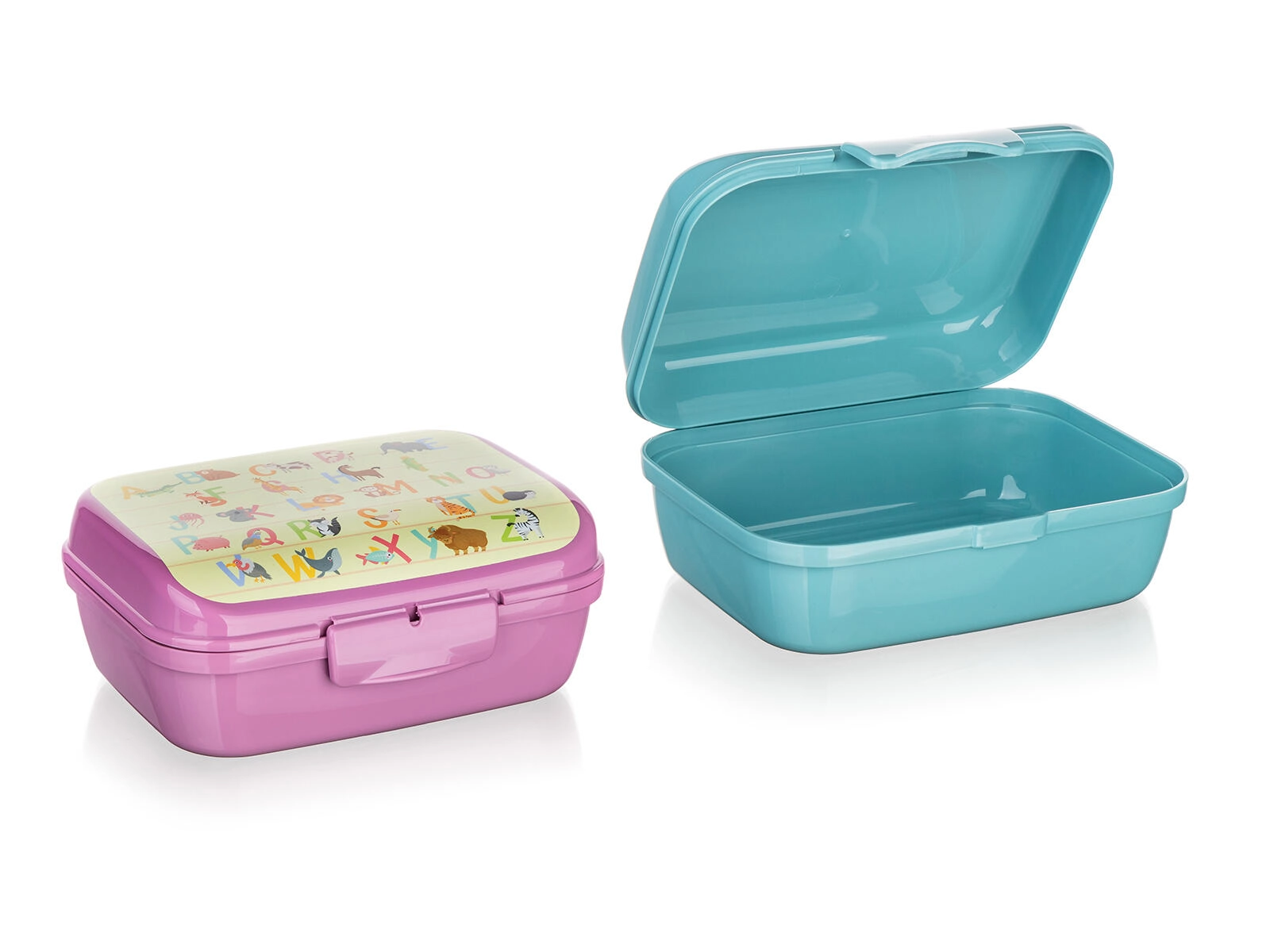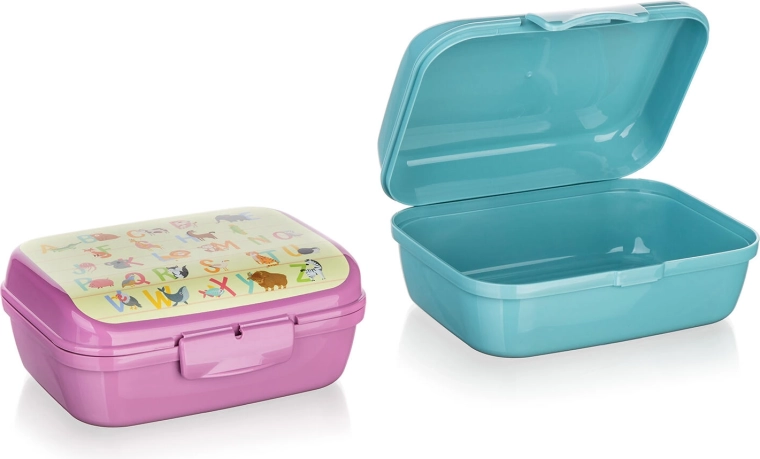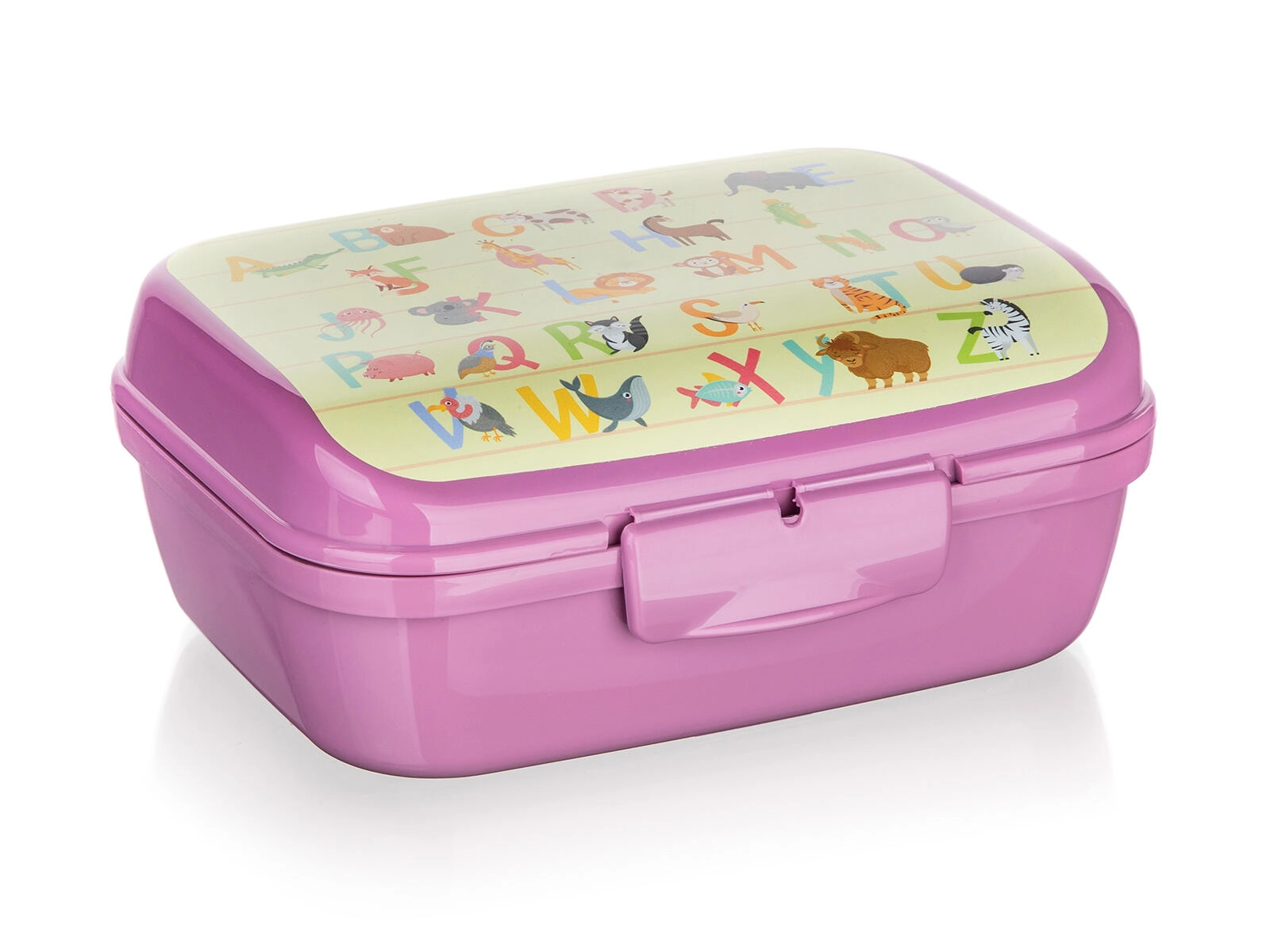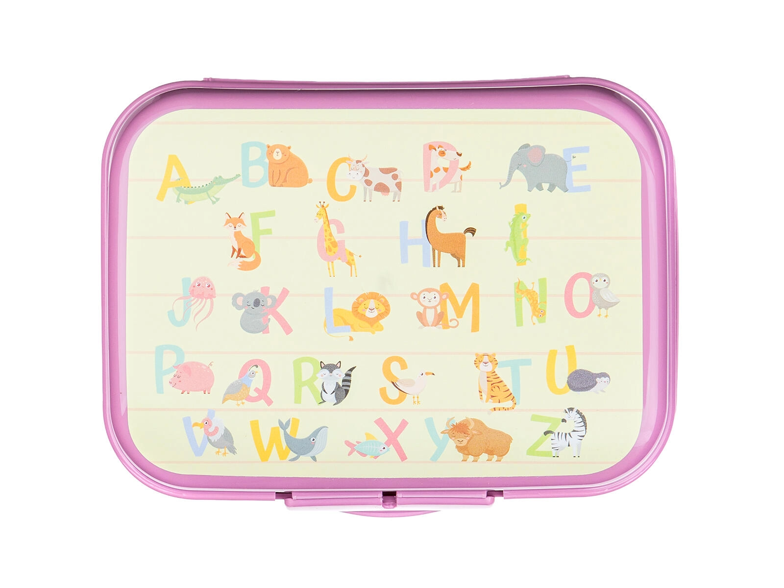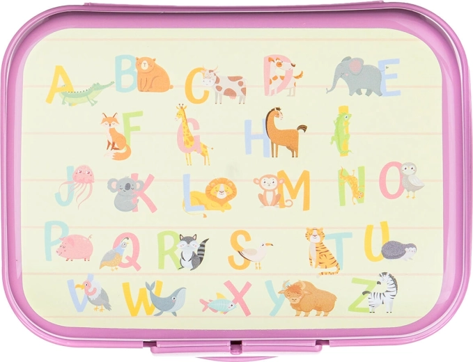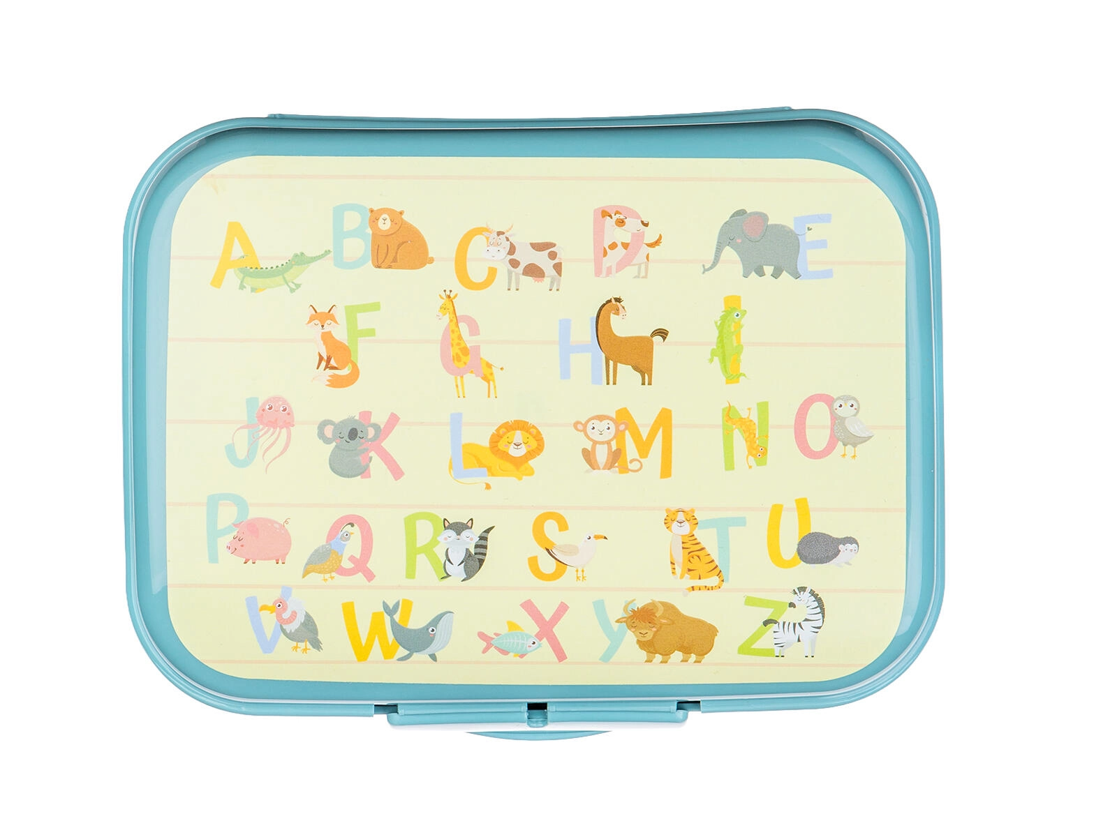 Kolorowy alfabet ze zwierzątkami motywuje dzieci do jedzenia przekąsek i nadaje pudełku zabawny wygląd.