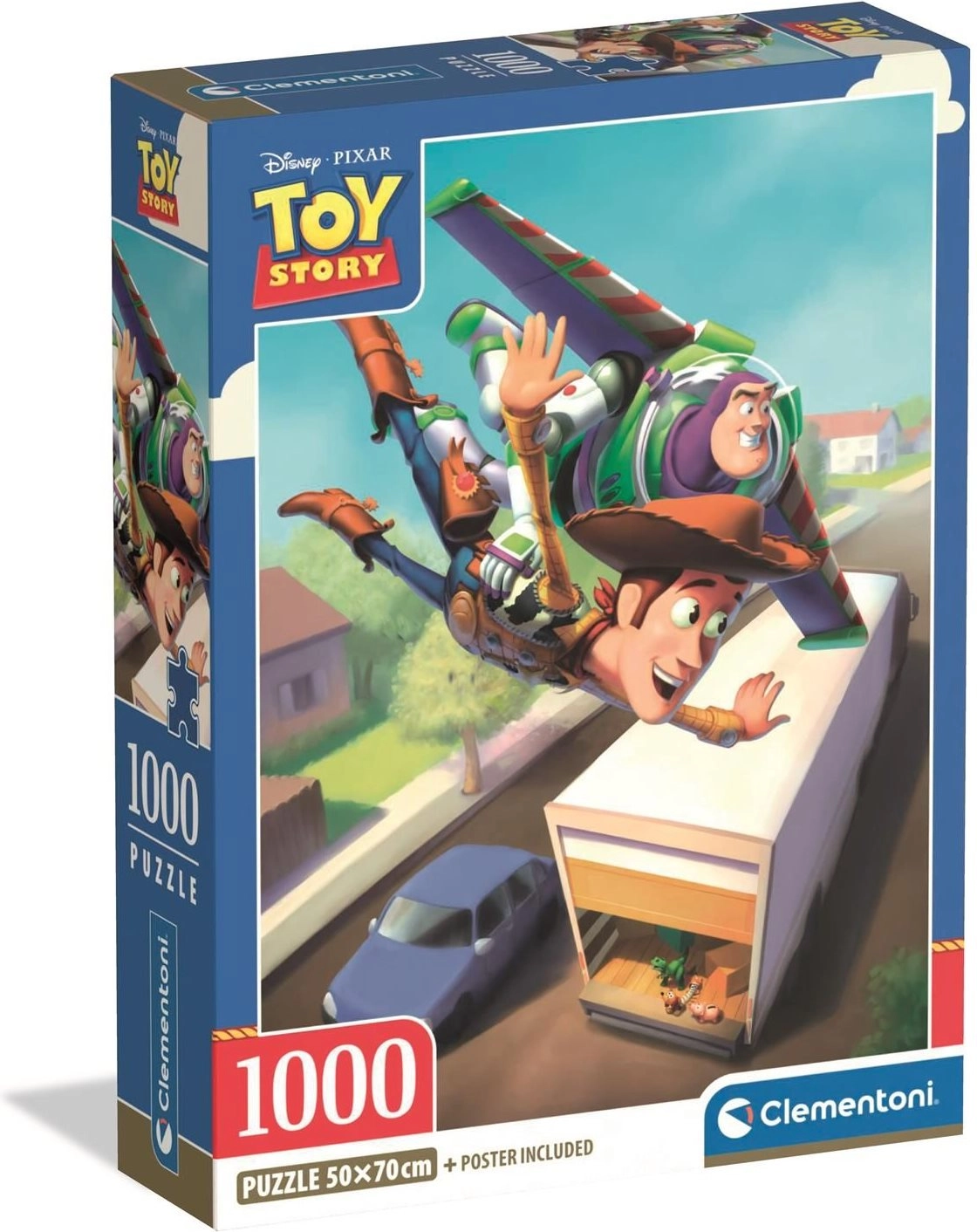 Ciesz się godzinami zabawy z wysokiej jakości puzzlami CLEMENTONI inspirowanymi animowanym filmem Toy Story. Układanka z 1000 elementów tworzy obraz o wymiarach około 50 × 70 cm i zachwyci fanów w każdym wieku precyzyjną jakością druku oraz żywymi kolorami.