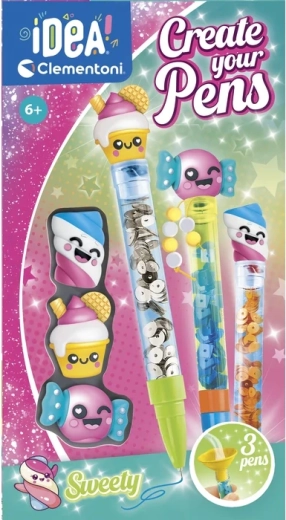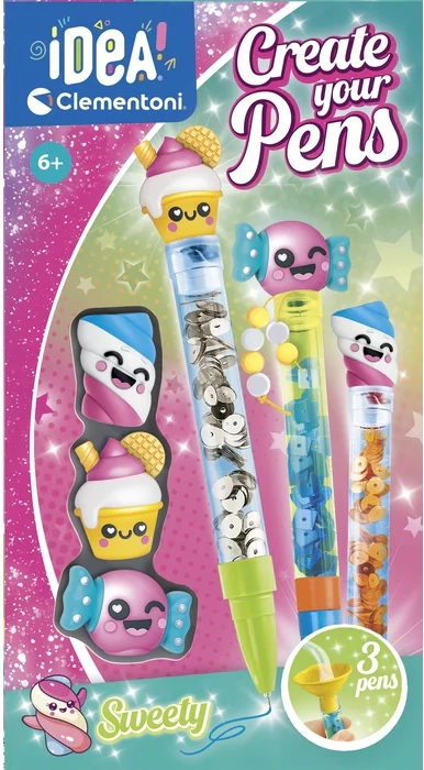 Stwórz własne stylowe długopisy z zabawnymi motywami słodkości dzięki zestawowi CLEMENTONI IDEA. Opakowanie zawiera wszystko, czego potrzebujesz do wykonania 3 oryginalnych długopisów – przezroczyste korpusy z pływającymi brokatami i ozdobami w wodzie, kolorowe wkłady atramentowe oraz urocze gumowe figurki. W zestawie znajduje się także stojak z lejkiem ułatwiający napełnianie, dzięki czemu tworzenie jest czyste, zabawne i wspiera kreatywność oraz zręczność.