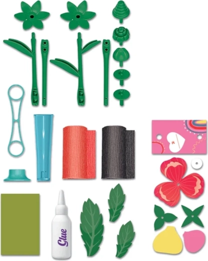 W skład zestawu wchodzi także kartka z uchwytem na kwiat, którą można łatwo spersonalizować i podarować jako osobisty prezent dla rodziny lub przyjaciół. Zestaw wspiera kreatywność, cierpliwość i małą motorykę, a jednocześnie oferuje świetny sposób na zapoznanie dzieci z kształtami i kolorami.