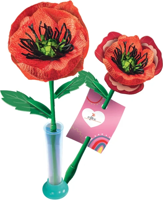 Kreatywny zestaw do wykonania dwóch kwiatów, który pozwala dzieciom składać, kolorować i zdobić własne maki polne. Opakowanie zawiera łodygi, płatki do pokolorowania, listki do składania i stojaki na kwiaty oraz kartkę podarunkową z uchwytem. Idealny do rozwijania wyobraźni, małej motoryki i kreatywności.