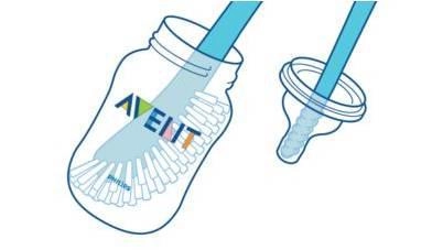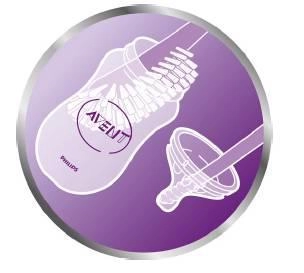 Zintegrowana, żebrowana końcówka na końcu rączki ułatwia czyszczenie smoczków, ustników i innych trudno dostępnych miejsc.