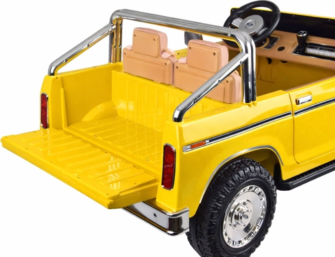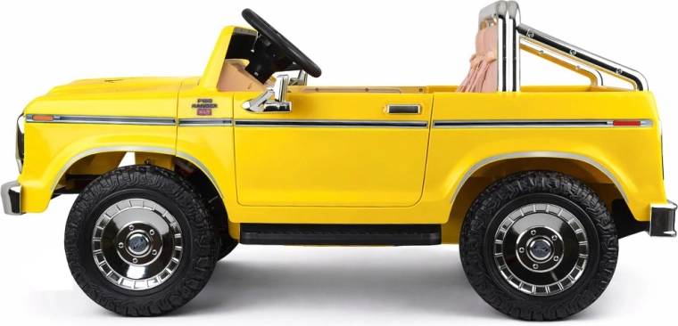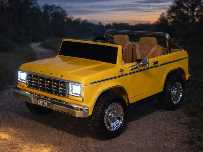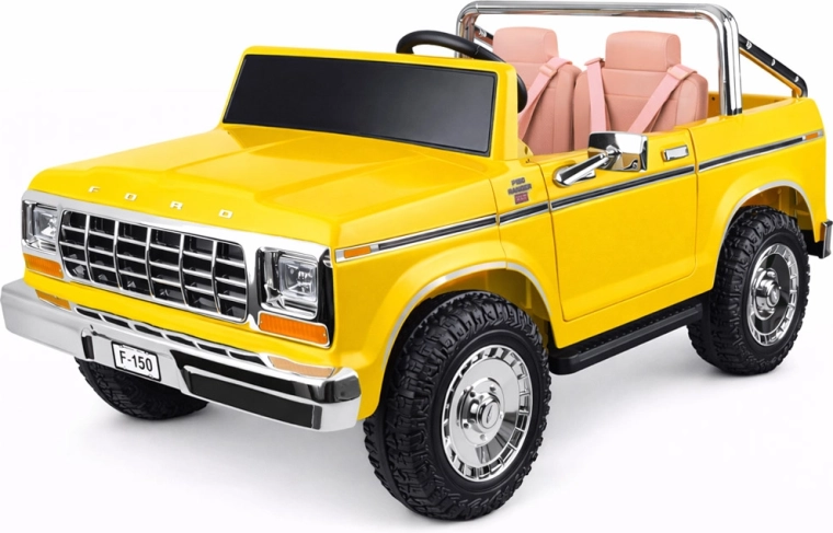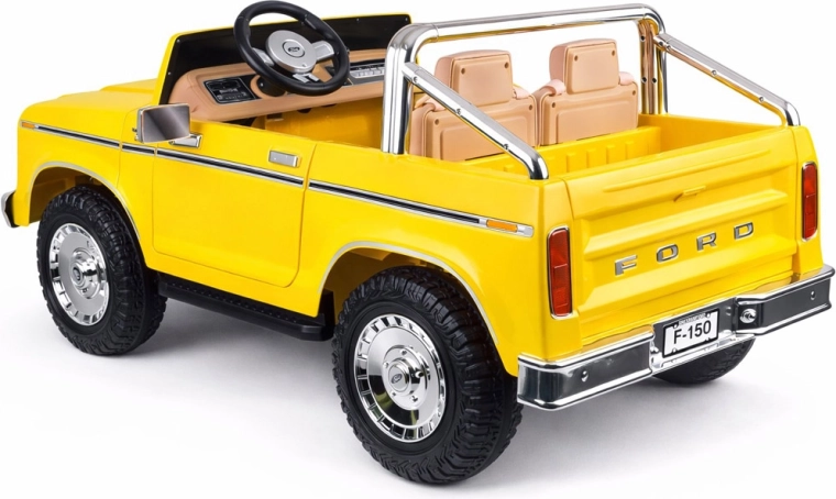 Legendarny wygląd amerykańskiego pick-upa w wersji dla dzieci. Elektryczny samochodzik dla dwojga małych kierowców zachwyca klasycznymi kształtami, chromowanymi detalami oraz starannie wykończonym wnętrzem z ekoskórzanymi siedzeniami, wskaźnikiem naładowania baterii i dźwignią zmiany kierunku jazdy. Z przodu ma reflektory, po bokach lusterka, a także otwierane drzwi dla wygodnego wsiadania oraz otwieraną tylną burtę.