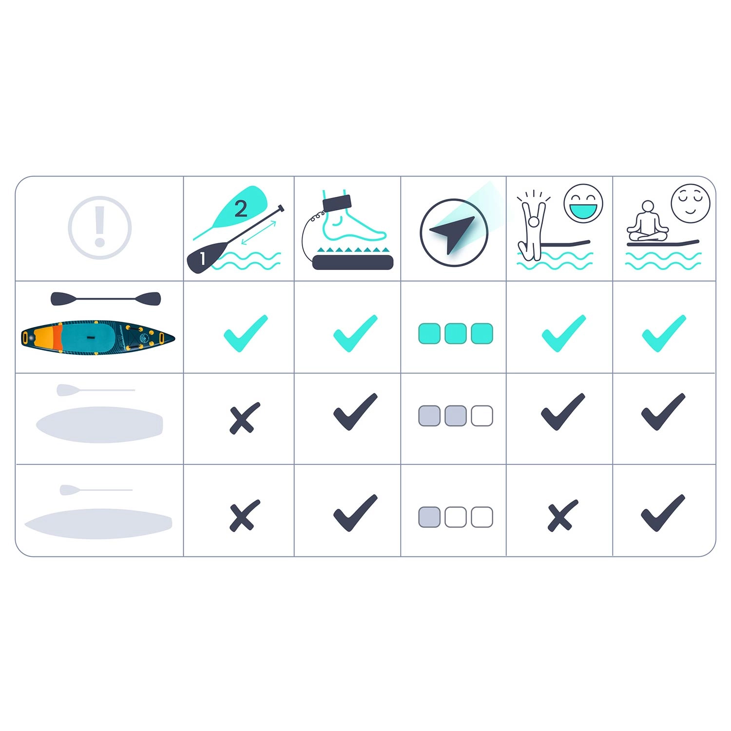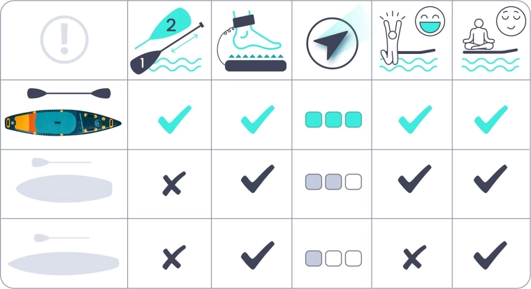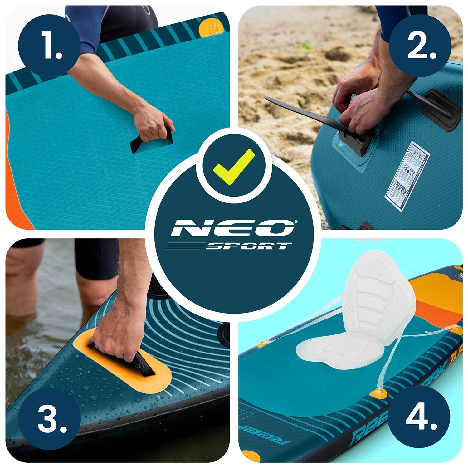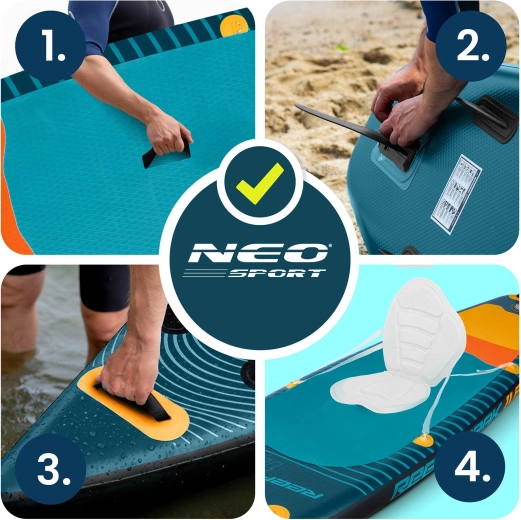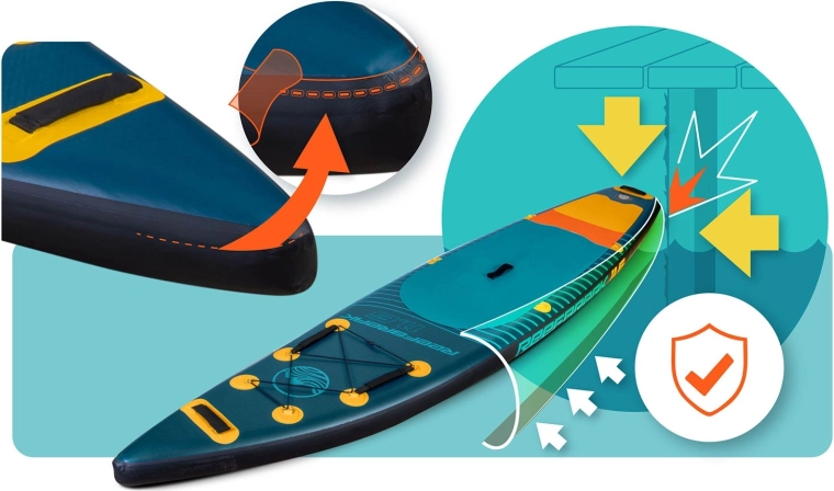 Teksturowana mata EVA zapobiega poślizgom nawet boso. Liczne uchwyty nośne ułatwiają manewrowanie na plaży i podczas wodowania.
