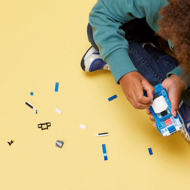 Model LEGO radiowozu policyjnego oferuje miejsce dla minifigurki policjanta i realistyczne detale dla dynamicznej zabawy.