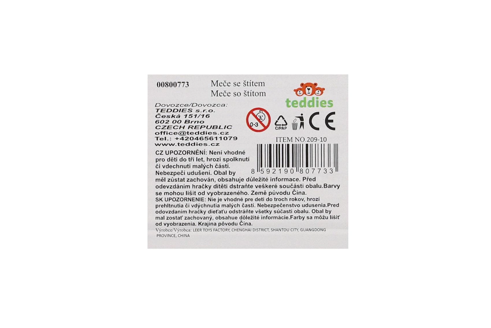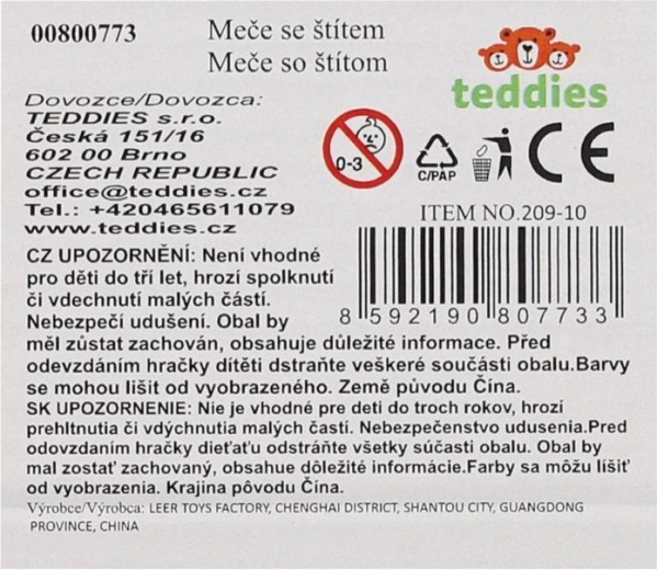 - 2 plastikowe miecze, 1 plastikowa tarcza