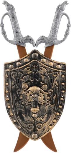 Podaruj dzieciom pełne akcji rycerskie bitwy i fantastyczne opowieści dzięki kompletnemu zestawowi łączącemu bezpieczne plastikowe miecze oraz zdobioną tarczę z emblematem lwa. Doskonale sprawdzi się do domowych zabaw, kostiumów karnawałowych i dziecięcych przedstawień.