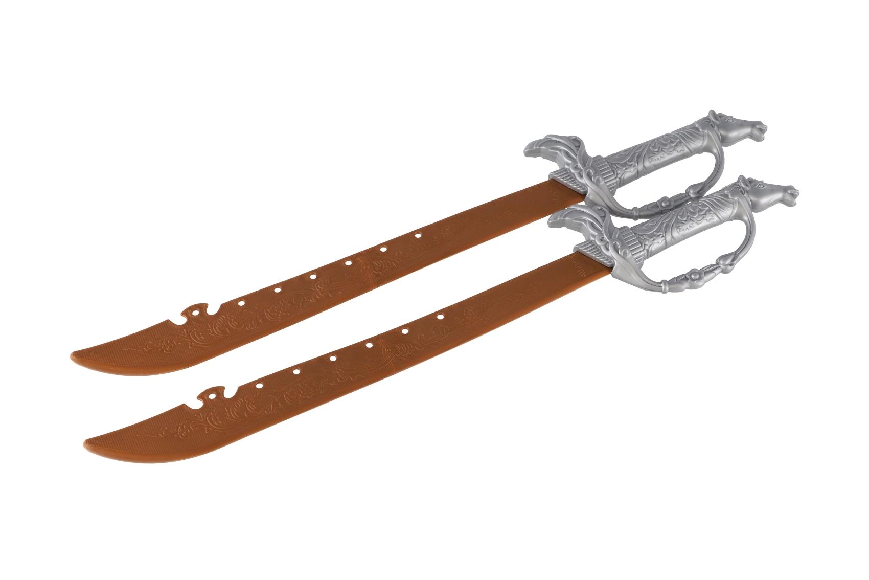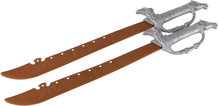 Para lekkich plastikowych mieczy z precyzyjnie ukształtowanymi rękojeściami sprzyja grze zespołowej i pojedynkom. Bezpieczne wykonanie jest idealne na dziecięce przygody.