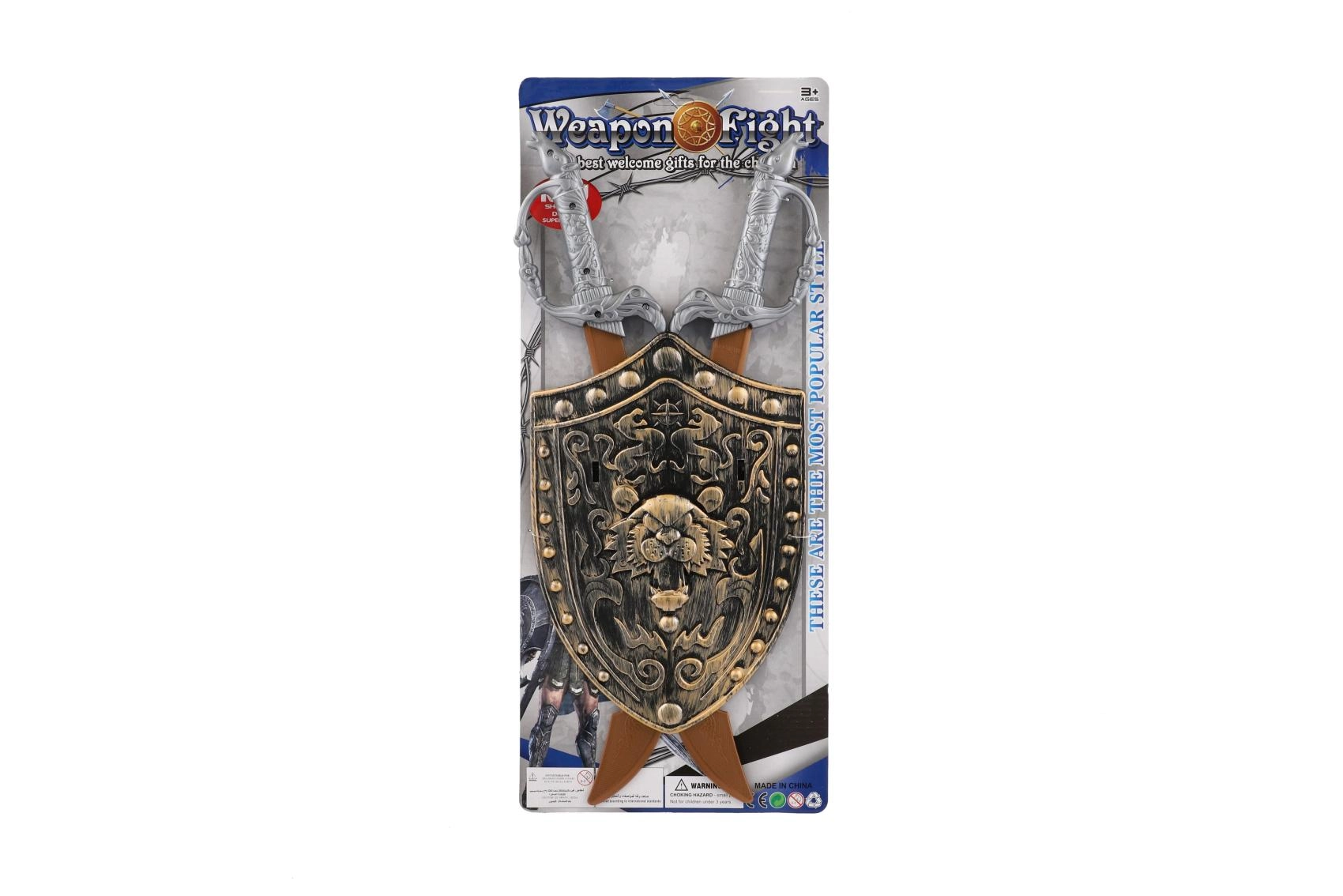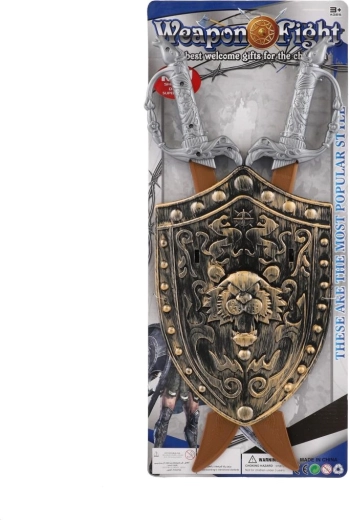 Praktyczne opakowanie z mieczami i tarczą, gotowe do natychmiastowej zabawy. Świetny pomysł na prezent dla małych miłośników średniowiecza i fantasy.