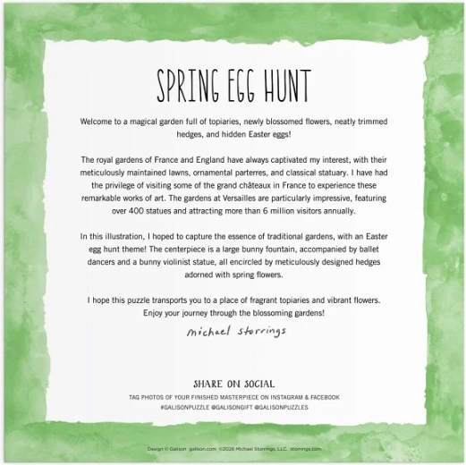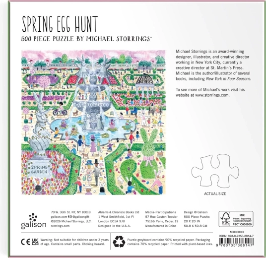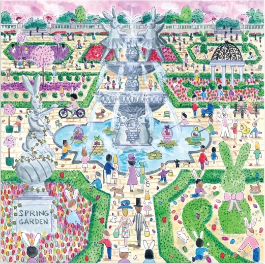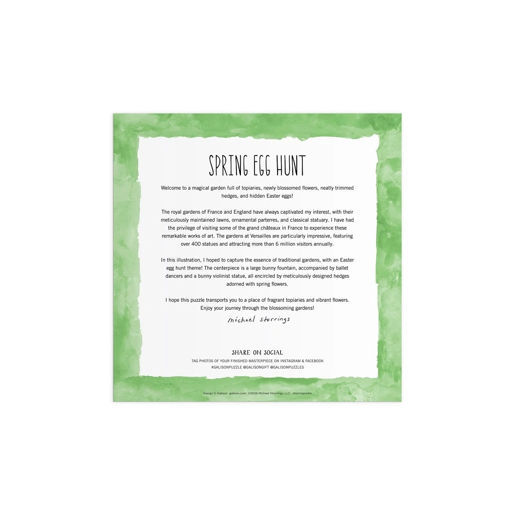 Delektuj się atmosferą wiosennego ogrodu inspirowanego europejskimi parkami z centralną fontanną i kwitnącymi rabatami. Ilustracja Michaela Storringsa wyróżnia się subtelnymi detalami, figlarnymi motywami i harmonijną paletą barw, dzięki czemu układanie jest zarówno zabawne, jak i kojące. Gotowy obraz o wymiarach 50,8 × 50,8 cm stanie się stylową dekoracją Twojego wnętrza.