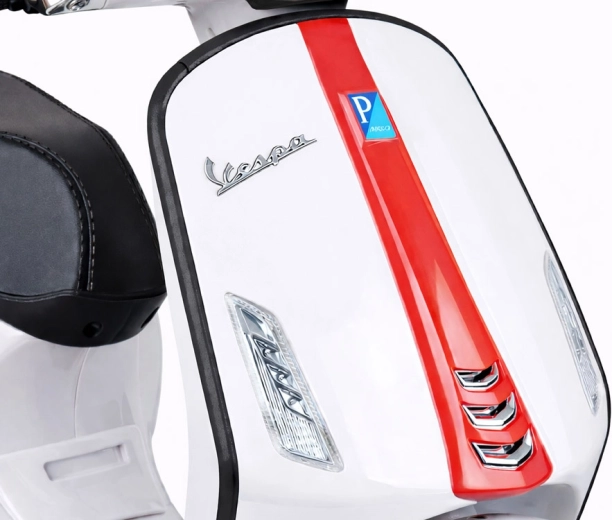 Jasny przedni reflektor zwiększa widoczność i nadaje skuterowi autentyczny wygląd ikonicznej VESPY.