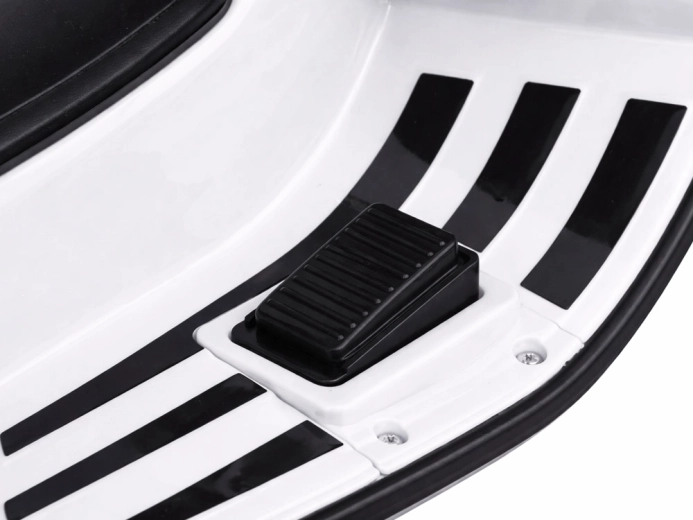 Elektryczny dziecięcy skuter w stylu VESPA łączy elegancki design z nowoczesnymi funkcjami. Uruchamiany jest przyciskiem, a symulacja dźwięku silnika zapewnia autentyczne wrażenia z jazdy. Wydajny napęd 2 × 12 V / 25 W i akumulator 12 V / 4,5 Ah gwarantują komfortową i płynną jazdę, a przedni reflektor dodaje stylu i poprawia widoczność.