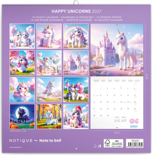 Pastelowe ilustracje jednorożców zamienią każdą ścianę w bajkowe miejsce i uprzyjemnią Twoje planowanie.