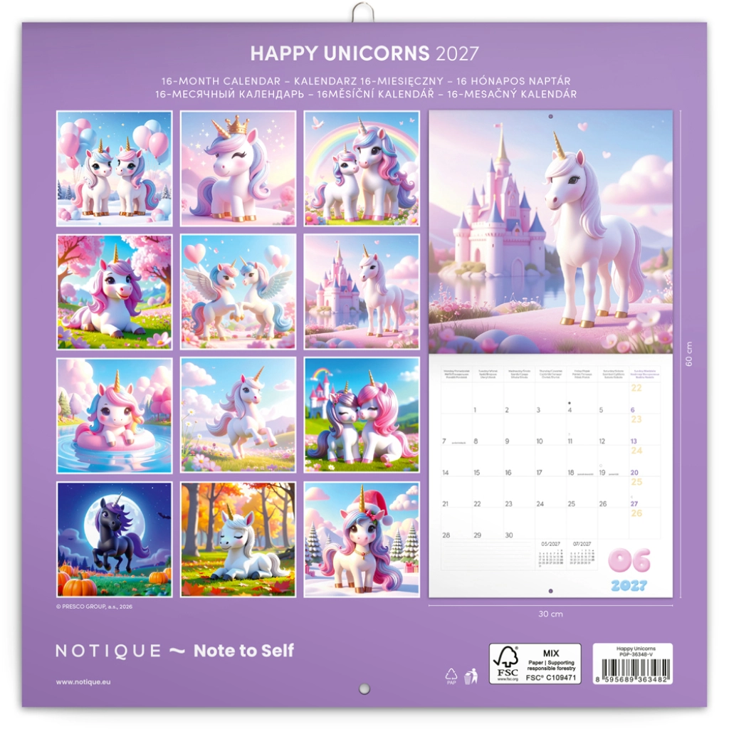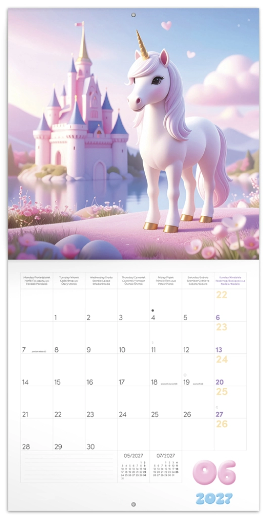Ten elegancki kalendarz w pastelowych kolorach z motywem wesołych jednorożców wprowadzi do Twojego domu i biura optymizm oraz ład. Dzięki dużemu polu do zapisków na każdy dzień z łatwością zaplanujesz pracę, szkołę i czas wolny.