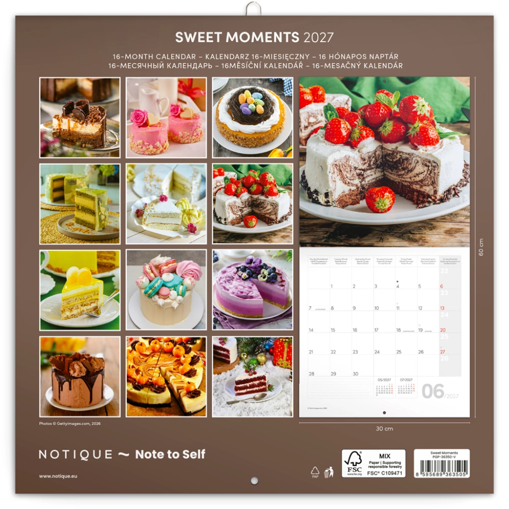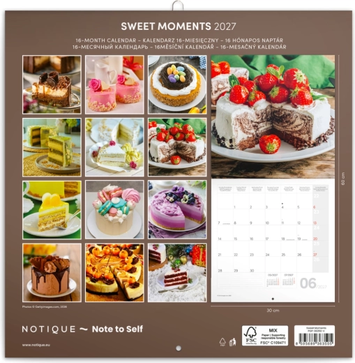 Stwórz przejrzysty plan na cały rok 2027 z eleganckim ściennym kalendarzem notesowym „Słodkie chwile”. Każda strona przynosi smakowitą porcję wizualnej inspiracji w postaci profesjonalnych fotografii deserów, a duże pole na notatki ułatwia zapisywanie zadań, urodzin i ważnych terminów.