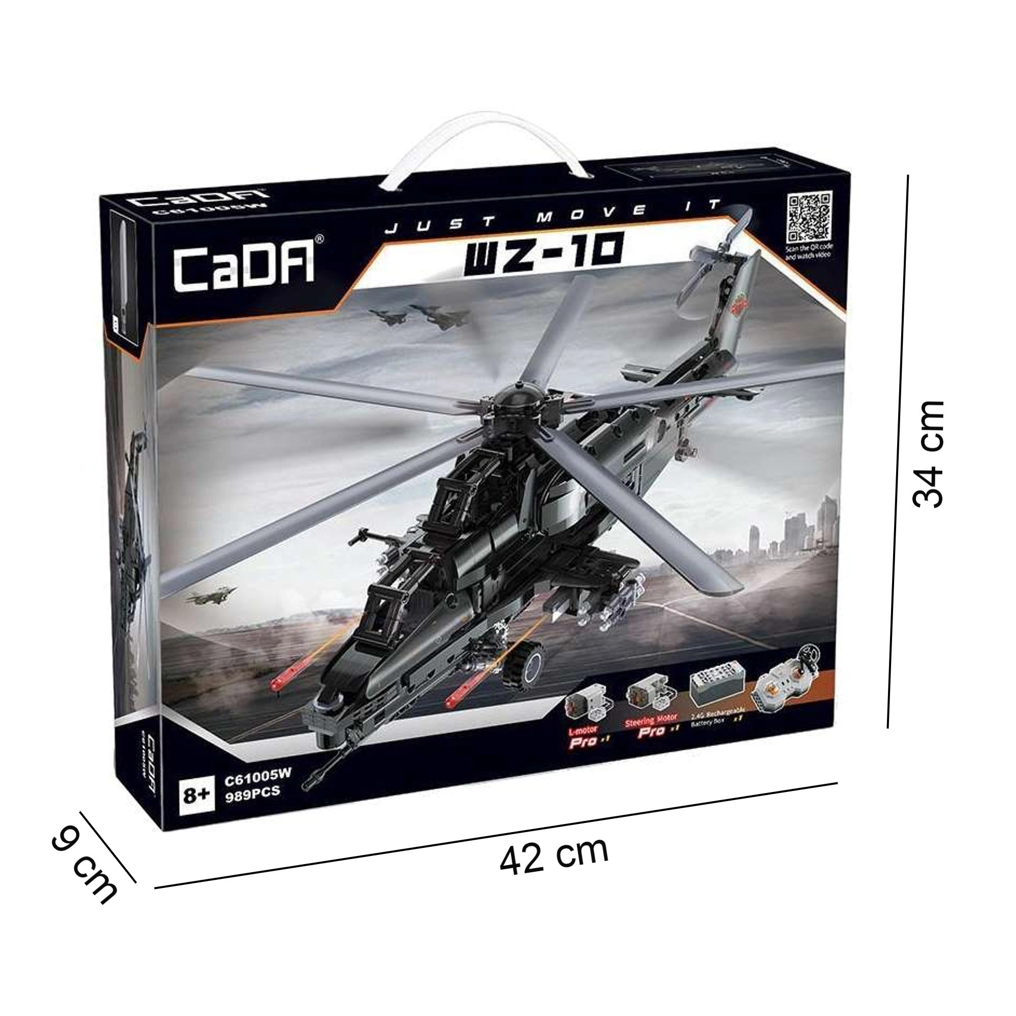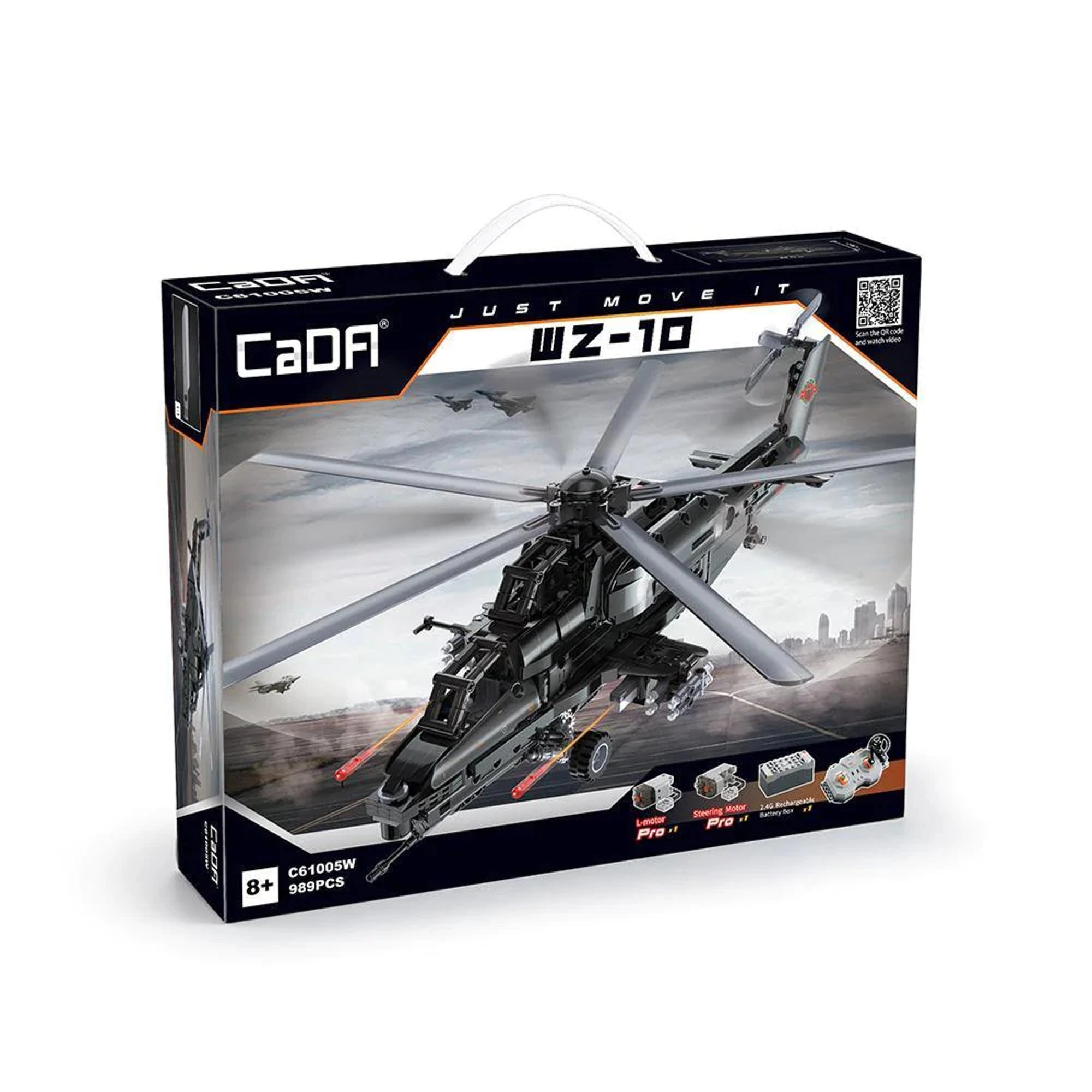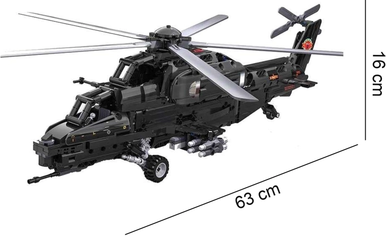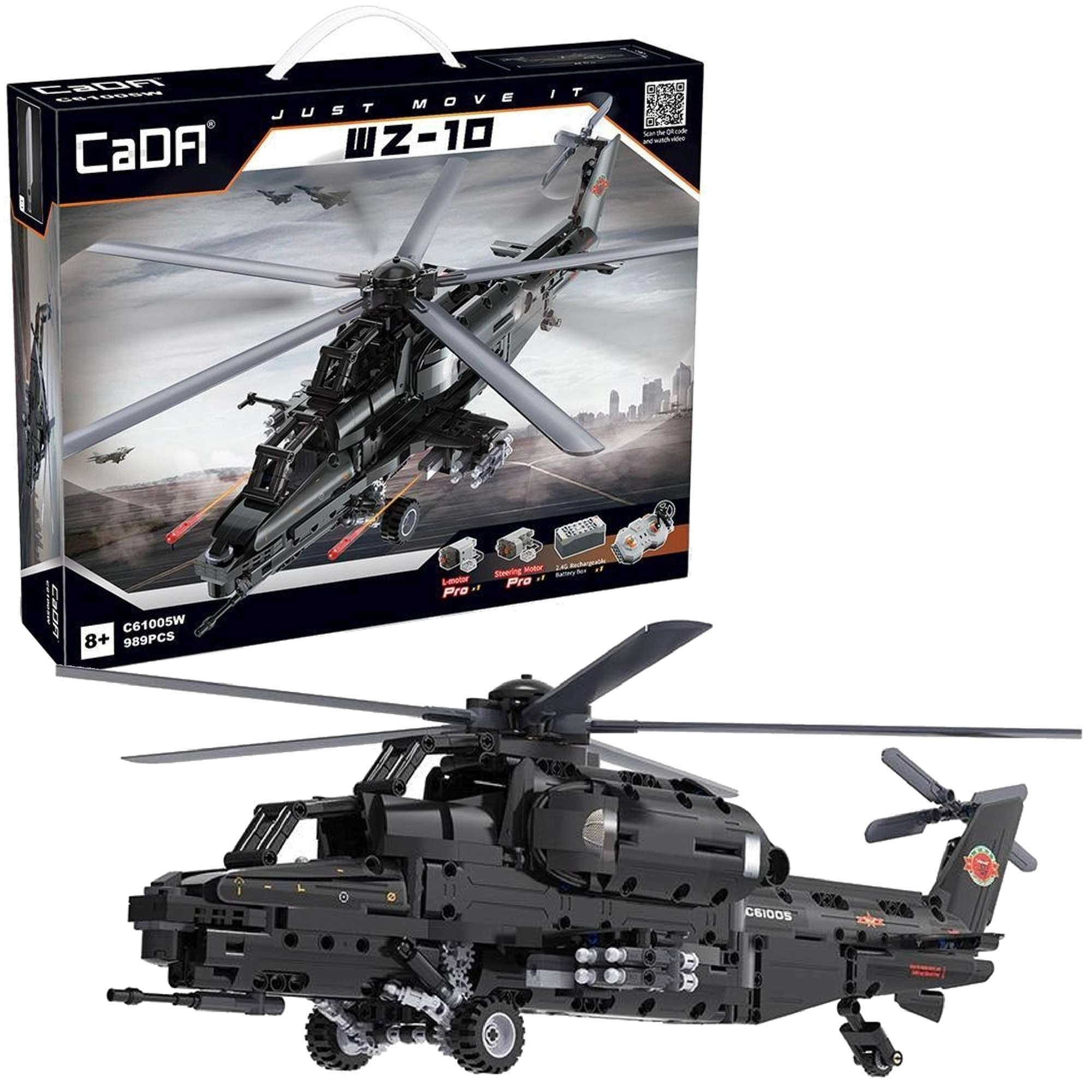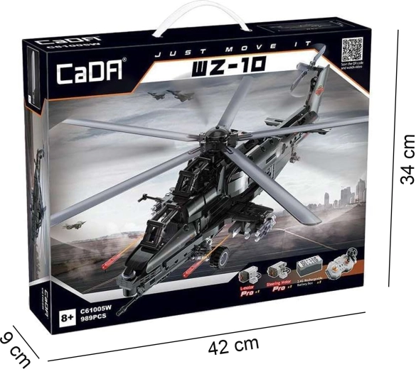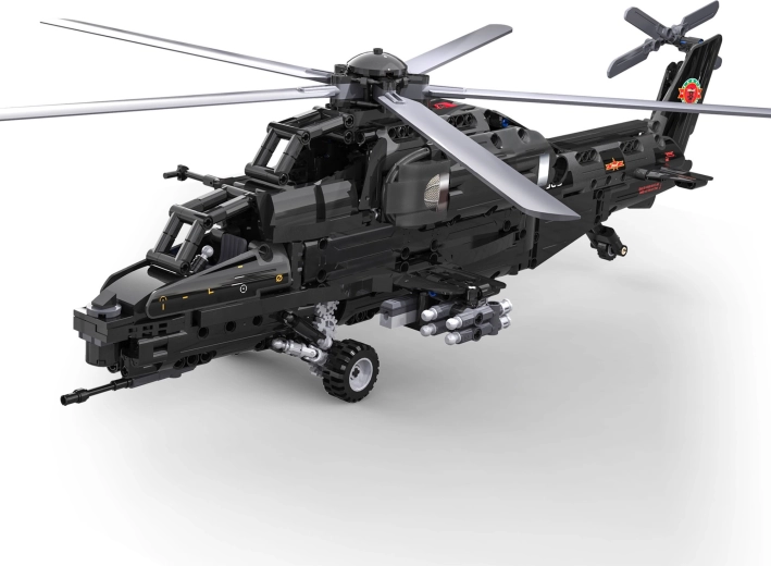 Zbuduj kultowy śmigłowiec szturmowy WZ-10 z 989 elementów od CaDA i steruj nim zdalnie. Model oferuje działający główny i ogonowy wirnik, otwierany kokpit, funkcyjny wyrzutnik rakiet oraz ruch na kółkach. Dzięki zdalnemu sterowaniu 2,4 GHz z zasięgiem ponad 25 m czeka Cię mnóstwo akcji i precyzyjnej, technicznej zabawy w budowanie.