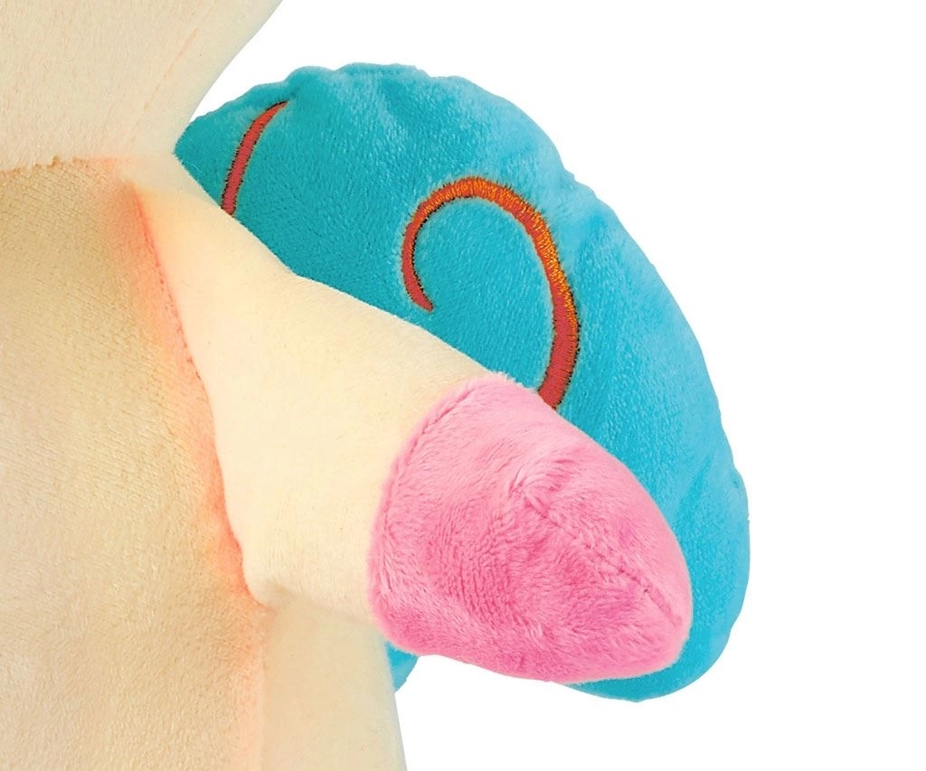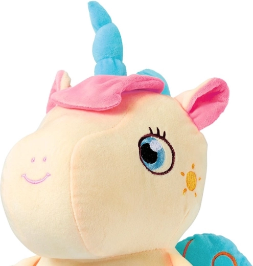 Miękki plusz z wyszywanymi detalami jest delikatny dla dziecięcej skóry. Zabawka spełnia normy bezpieczeństwa i jest odpowiednia dla dzieci 0m+.