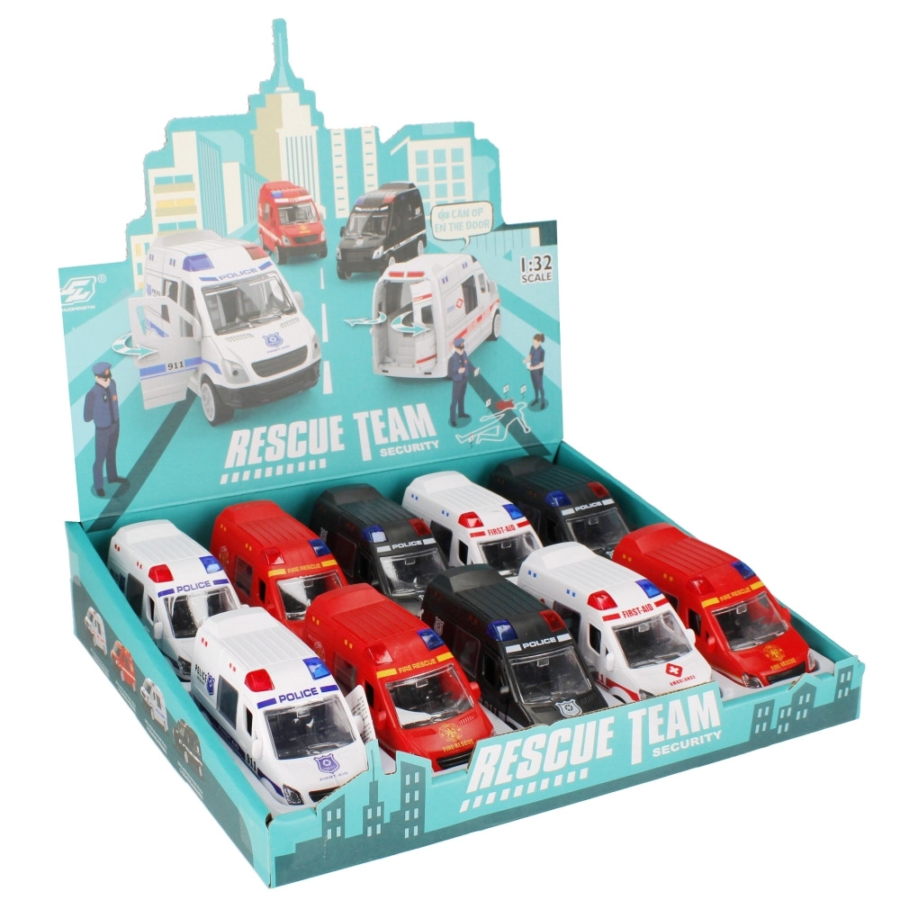 Dostępne są trzy warianty: Fire Rescue (czerwony strażacki), Police SWAT (czarny policyjny) oraz Ambulance (biała karetka). Wysoko detaliczne wzornictwo wspiera zabawy wyobraźniowe i pomaga dzieciom rozwijać motorykę oraz współpracę podczas wspólnej zabawy.