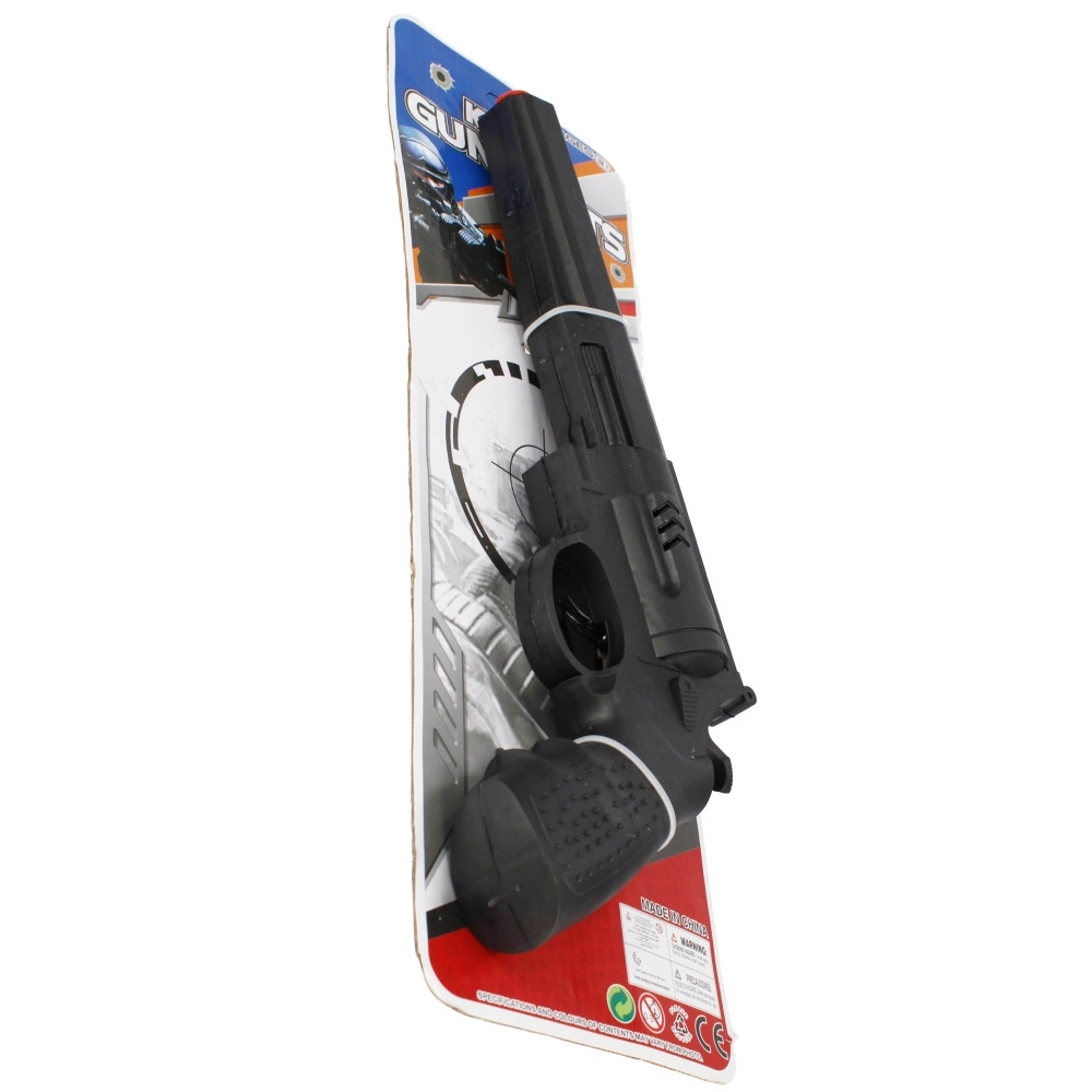Ten dziecięcy pistolet z dźwiękiem oferuje bezpieczną zabawę dla małych poszukiwaczy przygód. Po naciśnięciu spustu rozlega się realistyczny dźwięk, który pobudza wyobraźnię i wspiera odgrywanie ról. Dzięki działaniu bez baterii jest niezawodny, łatwy w użyciu i gotowy do akcji w każdej chwili.