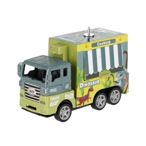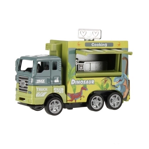 Odkryj dynamiczną zabawę z solidną metalową ciężarówką, która jest gotowa przewieźć nawet „prehistoryczny ładunek”. Mechanizm pull-back sprawia, że po naciągnięciu auto wystrzeli do przodu, a ruchome elementy i wózek transportowy dodają autentyczności. Dzieci w zabawny sposób rozwijają motorykę małą, wyobraźnię i koordynację.