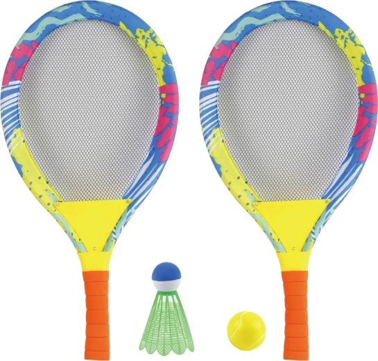 Ciesz się aktywną zabawą w ogrodzie z tym kolorowym dziecięcym zestawem 2w1 do tenisa i badmintona. Zawiera 2 odciążone rakiety z miękkimi piankowymi uchwytami dla wygodnego chwytu, ekstra miękką siatkę naciągu dla łatwiejszego odbicia oraz lekkie piłeczki dla maksymalnego bezpieczeństwa podczas gry. Odpowiednie dla dzieci od 3 lat.