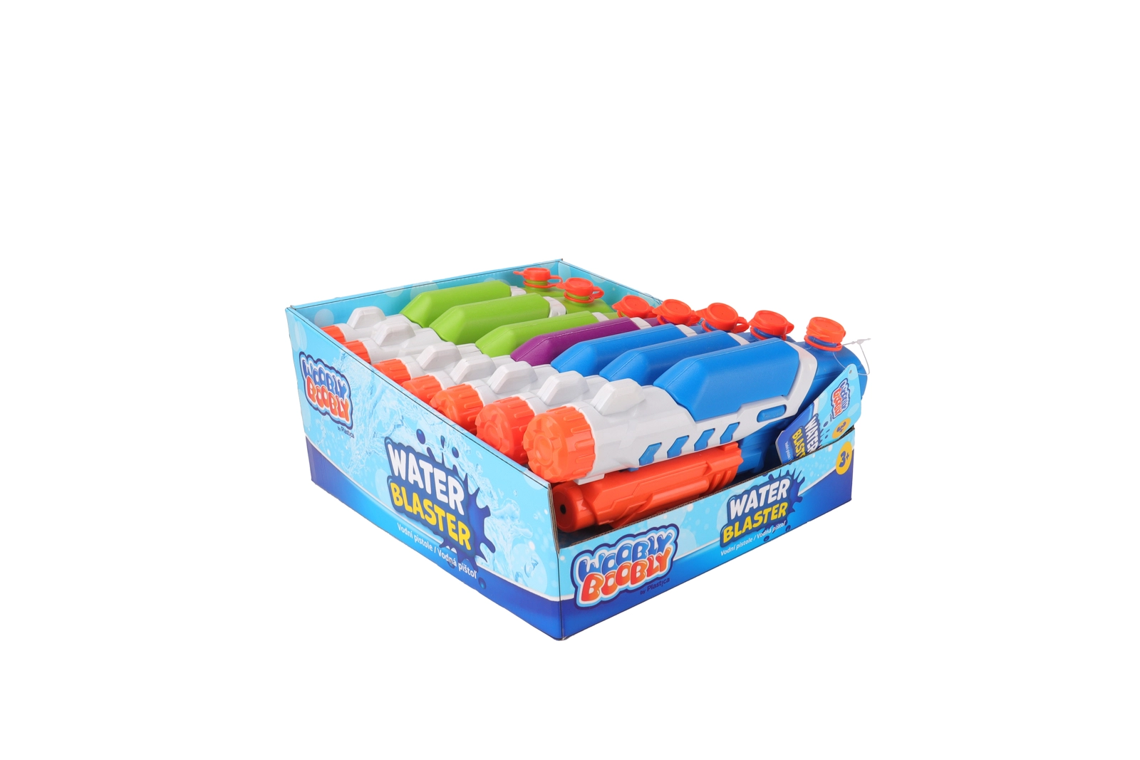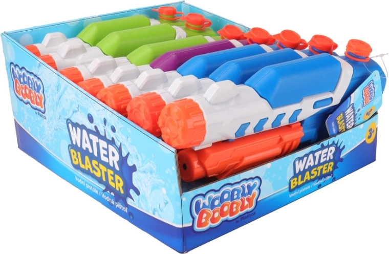 Intuicyjna obsługa ze spustem i górną nakrętką do napełniania umożliwia szybkie uzupełnianie i natychmiastowy powrót do zabawy. Trzy atrakcyjne wersje kolorystyczne (niebieska, zielona, fioletowa) dodają zabawie charakteru – opakowanie jest dostarczane jako asortyment – wybór konkretnego koloru nie jest możliwy.