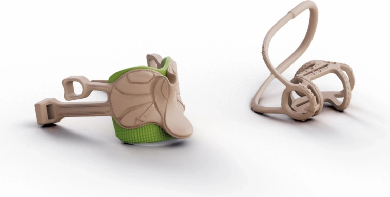 W zestawie znajduje się wszystko, co potrzebne do wygodnej jazdy: zdejmowane siodło i uzda z wodzami, jeździecki kask oraz stylowe akcesoria. Dzieci mogą przygotować konia, osiodłać go i bezpiecznie wyruszyć na wycieczkę – zabawa i wyobraźnia bez granic.