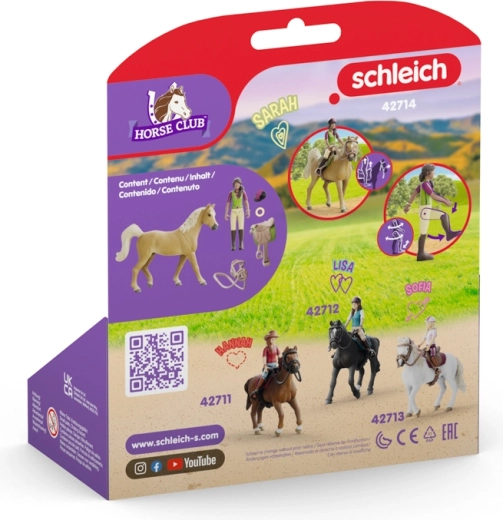Wybierz się na przejażdżkę do lasów Peppertree! Sarah i jej arabska klacz Mystery tworzą nierozłączny duet, gotowy na nowe przygody. Dzięki w pełni ruchomej figurce Sarah i realistycznie odwzorowanej klaczy dzieci przeżyją autentyczne scenariusze ze świata jeździeckiego HORSE CLUB.